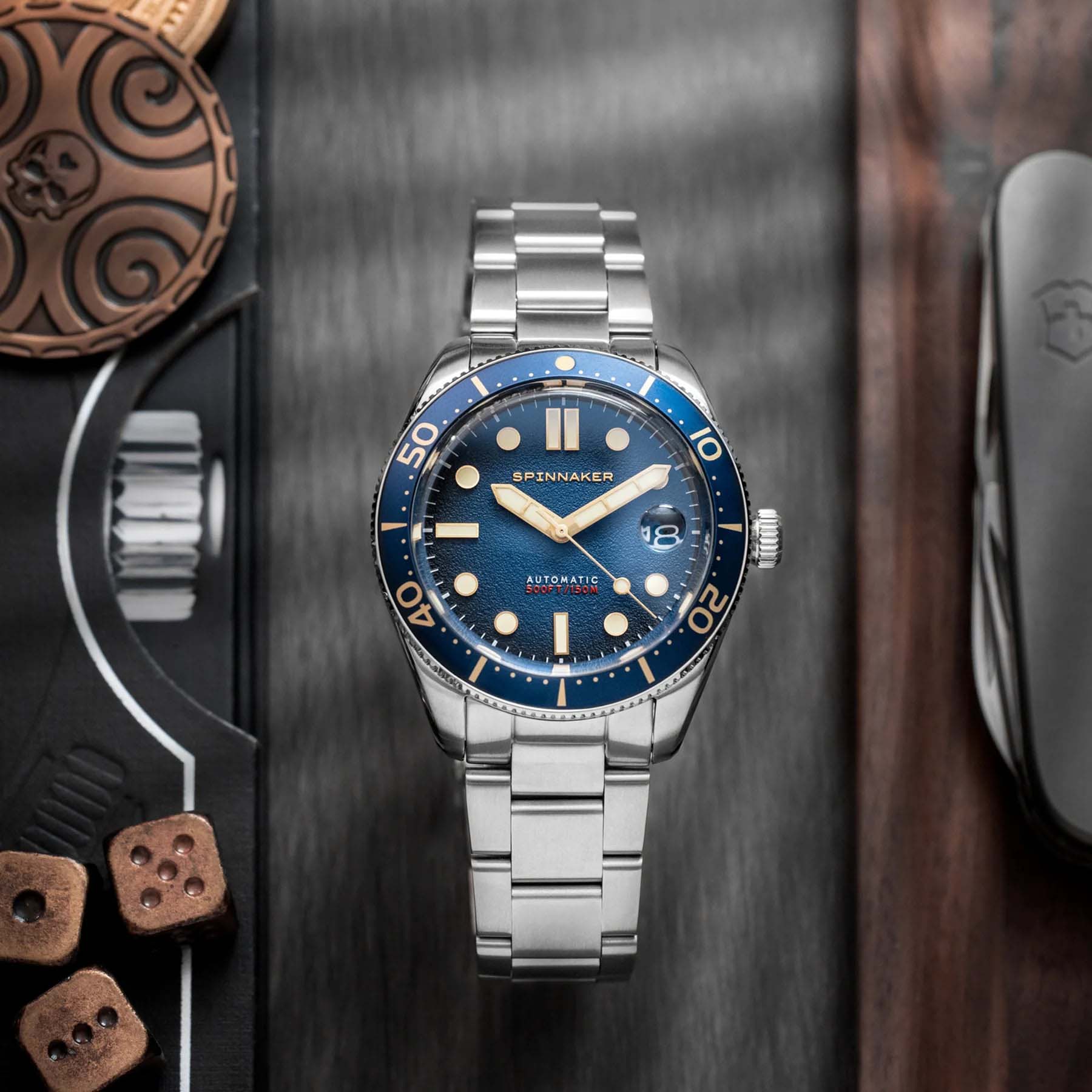 Мужские итальянские часы Spinnaker Croft SP-5100-22, механический механизм (автоматический калибр) с высокой точностью. Циферблат с люминесцентным покрытиемЛюминесцентное покрытиеПозволяет считывать показания времени в темноте. Производители наносят на стрелки, часовые индексы, безель или поверхность циферблата светонакопительный состав, дающий холодное свечение. стрелок и меток, дополнен сапфировым стекломСапфировое стеклоПрочный и надёжный материал из кристалла сапфира синтетического происхождения, характеризующийся особой твёрдостью и устойчивостью к царапинам и повреждениям., устойчивым к появлению царапин и обладающее высокой прозрачностью. БезельБезельВнешний ободок, закрепляющий стекло. В спортивных часах так называется поворотное кольцо с делениями на циферблате, выполняет роль таймера – замеряет отрезки времени на шкале. Неподвижный безель – элемент декора. Однонаправленно вращающийся безель на дайверских часах позволяет фиксировать моменты погружения и выныривания на поверхность. с PVD-покрытиемPVDУльтратонкое покрытие наносится в технике вакуумного напыления, сочетает в себе нитрид титана особой прочности со слоем золота или оксида хрома. Несёт в себе декоративную или защитную функцию.. Класс водозащиты: 150 метров, позволит плавать, нырять и заниматься другими водными видами спорта. Корпус часов изготовлен из стали. Браслет с раскладной застёжкойРаскладная застёжкаТакой тип застёжки используется только на браслетах из металла. Она никогда не раскрывается полностью, происходит разделение на 2 и более частей. Раскладывающая застёжка снизит вероятность потери часов к минимуму..
