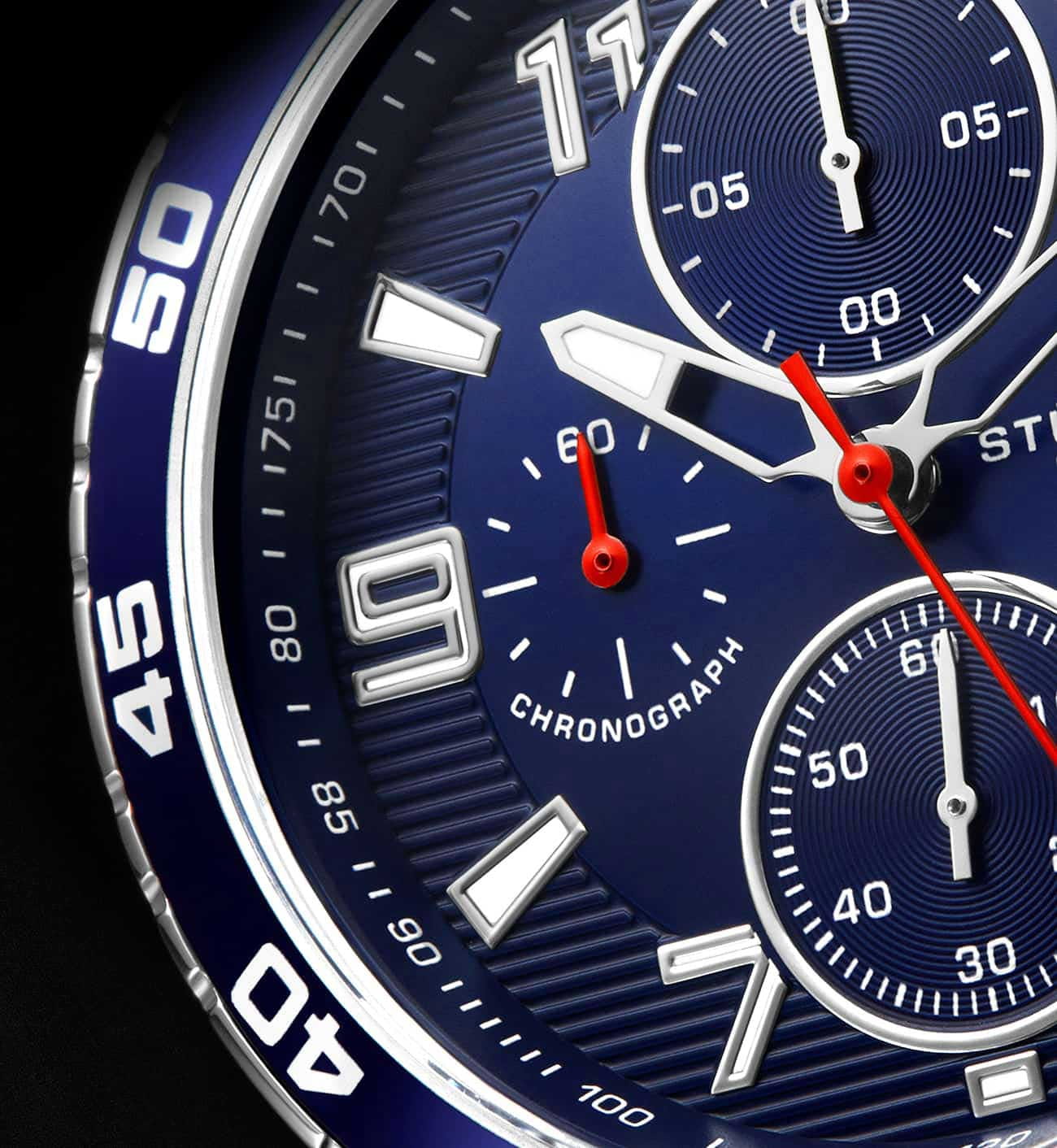 Stuhrling 3957.2 — мощные мужские часы с выразительным спортивным характером и динамичным дизайном. Корпус из нержавеющей стали гармонично сочетается с циферблатом, оформленным рельефным узором и контрастными счётчиками хронографаХронографФункция позволяет измерять отрезки времени с особой точностью: часы, минуты, секунды. Верным признаком хронографа является наличие на циферблате 3 дополнительных окошек-счётчиков.. Широкий безельБезельВнешний ободок, закрепляющий стекло. В спортивных часах так называется поворотное кольцо с делениями на циферблате, выполняет роль таймера – замеряет отрезки времени на шкале. Неподвижный безель – элемент декора. Однонаправленно вращающийся безель на дайверских часах позволяет фиксировать моменты погружения и выныривания на поверхность. с PVD-покрытиемPVDУльтратонкое покрытие наносится в технике вакуумного напыления, сочетает в себе нитрид титана особой прочности со слоем золота или оксида хрома. Несёт в себе декоративную или защитную функцию. подчёркивает брутальный стиль модели, а стрелки и метки с люминесцентным покрытиемЛюминесцентное покрытиеПозволяет считывать показания времени в темноте. Производители наносят на стрелки, часовые индексы, безель или поверхность циферблата светонакопительный состав, дающий холодное свечение. обеспечивают идеальную читаемость в любых условиях. Прочное стекло KrysternaKrysternaKrysterna — инновационное стекло для наручных часов. Благодаря уникальной структуре, Krysterna объединяет ключевые преимущества двух материалов: твердость сапфира, защищающую от царапин, и гибкость минерального стекла, обеспечивающую устойчивость к деформациям. Такая комбинация делает его идеальным решением для часов, подверженных экстремальным нагрузкам, сохраняя при этом оптическую прозрачность. устойчиво к царапинам, сохраняя прозрачность и блеск. Завершает образ стальной браслет с раскладной застёжкойРаскладная застёжкаТакой тип застёжки используется только на браслетах из металла. Она никогда не раскрывается полностью, происходит разделение на 2 и более частей. Раскладывающая застёжка снизит вероятность потери часов к минимуму., гарантирующий комфорт и надёжную фиксацию. Stuhrling — стильная и функциональная модель для уверенных мужчин, ценящих точность и энергию в каждой детали.