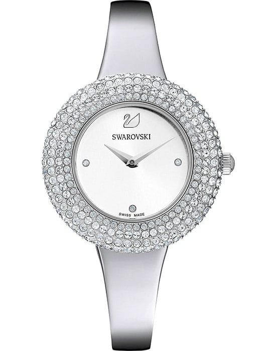 Женские часы Swarovski Crystal Rose 5483853 – это элегантные и утончённые часы, отличающиеся непревзойдённым сиянием. БезельБезельВнешний ободок, закрепляющий стекло. В спортивных часах так называется поворотное кольцо с делениями на циферблате, выполняет роль таймера – замеряет отрезки времени на шкале. Неподвижный безель – элемент декора. Однонаправленно вращающийся безель на дайверских часах позволяет фиксировать моменты погружения и выныривания на поверхность. украшен микропаве из 215 кристаллов. Завершающие штрихи уникального дизайна – корпус и браслет из нержавеющей стали и серебристый циферблат с рисунком в виде солнечных лучей и тремя метками из прозрачных кристаллов. Надежное минеральное стеклоМинеральное стеклоМинеральное стекло представляет собой искусственно выращенный минерал кварца. Такое стекло отличается особой устойчивостью к повреждениям и царапинам. Уступает по некоторым качествам сапфировому стеклу. защищает часы от царапин и долго сохраняет первоначальный внешний вид. Водозащита 50 метров делает часы практичными для повседневного использования.