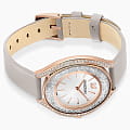 Swarovski 5519450 — элегантные женские часы из коллекции Crystalline Aura, сочетающие изысканный дизайн с высоким качеством. Корпус диаметром 35,5 мм выполнен из нержавеющей стали с розовым PVD-покрытиемPVDУльтратонкое покрытие наносится в технике вакуумного напыления, сочетает в себе нитрид титана особой прочности со слоем золота или оксида хрома. Несёт в себе декоративную или защитную функцию., что обеспечивает долговечность и элегантный вид. Минеральное стеклоМинеральное стеклоМинеральное стекло представляет собой искусственно выращенный минерал кварца. Такое стекло отличается особой устойчивостью к повреждениям и царапинам. Уступает по некоторым качествам сапфировому стеклу. защищает циферблат от царапин. Корпус украшен более чем 1300 кристаллами Swarovski, создающими роскошный блеск. Бело-серебристый циферблат с изящными розово-золотистыми метками и стрелками подчёркивает утончённость дизайна. Логотип Swarovski в виде лебедя расположен на отметке «12 часов». Часы оснащены швейцарским кварцевым механизмом, обеспечивающим точный ход. Ремешок из итальянской телячьей кожи цвета тауп гарантирует комфортное ношение. Классическая застёжка обеспечивает надёжную фиксацию. Водозащита до 5 ATM (50 метров) делает часы подходящими для повседневного использования. Swarovski 5519450 — это идеальный выбор для женщин, ценящих утончённый стиль, функциональность и комфорт.