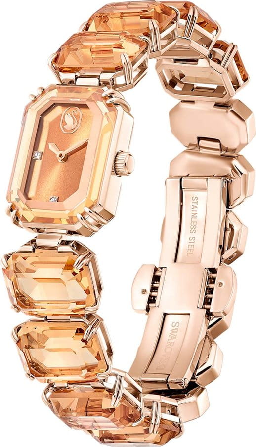 Элегантные часы Swarovski Millenia 5630831 добавят изысканности и утонченности в ваш повседневный образ. Эти изящные часы произведены в Швейцарии и оснащены надежным кварцевым механизмом, что гарантирует точное время и удобство в использовании. Часы выполнены в стильном восьмиугольном корпусе из стали с PVDPVDУльтратонкое покрытие наносится в технике вакуумного напыления, сочетает в себе нитрид титана особой прочности со слоем золота или оксида хрома. Несёт в себе декоративную или защитную функцию. покрытием цвета шампанского, который придает модели особый блеск и современный вид. Кристальный безельБезельВнешний ободок, закрепляющий стекло. В спортивных часах так называется поворотное кольцо с делениями на циферблате, выполняет роль таймера – замеряет отрезки времени на шкале. Неподвижный безель – элемент декора. Однонаправленно вращающийся безель на дайверских часах позволяет фиксировать моменты погружения и выныривания на поверхность., украшенный известными кристаллами Swarovski, добавляет дополнительное сияние и роскошь. Под сапфировым стекломСапфировое стеклоПрочный и надёжный материал из кристалла сапфира синтетического происхождения, характеризующийся особой твёрдостью и устойчивостью к царапинам и повреждениям. располагается золотистый циферблат, выполненный по технологии Sunray, создающий эффект солнечных лучей. Логотип Swarovski в виде лебедя изящно размещён в позиции 12 часов, а метки в виде точек из кристаллов украшают позиции 3, 6 и 9 часов. Мечевидные стрелки в стиле Sword подчеркивают изысканность и утонченность дизайна. Часы дополнены стальным браслетом с PVDPVDУльтратонкое покрытие наносится в технике вакуумного напыления, сочетает в себе нитрид титана особой прочности со слоем золота или оксида хрома. Несёт в себе декоративную или защитную функцию. покрытием цвета шампанского и застежкой «бабочка»Застёжка "бабочка"Такой вид застёжки дополняется предохранителями, помогающими избежать случайного раскрытия браслета. Обладают изящным исполнением. , который декорирован крупными коричневыми кристаллами Swarovski огранки октагон, добавляющими дополнительный акцент и шарм. С водозащитой до 50WR, эти часы сочетают в себе элегантность и практичность. Рифленая заводная головка и отсутствие секундной стрелки подчеркивают минимализм и изысканность дизайна. Эти часы станут идеальным аксессуаром для тех, кто ценит красоту и функциональность в одном изделии, добавляя вашему образу нотку роскоши и неповторимого стиля.
