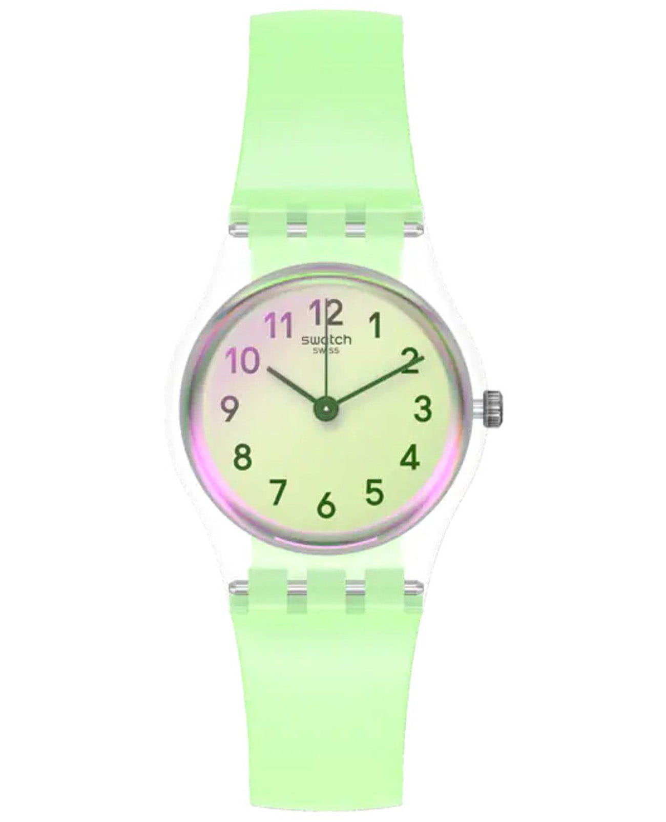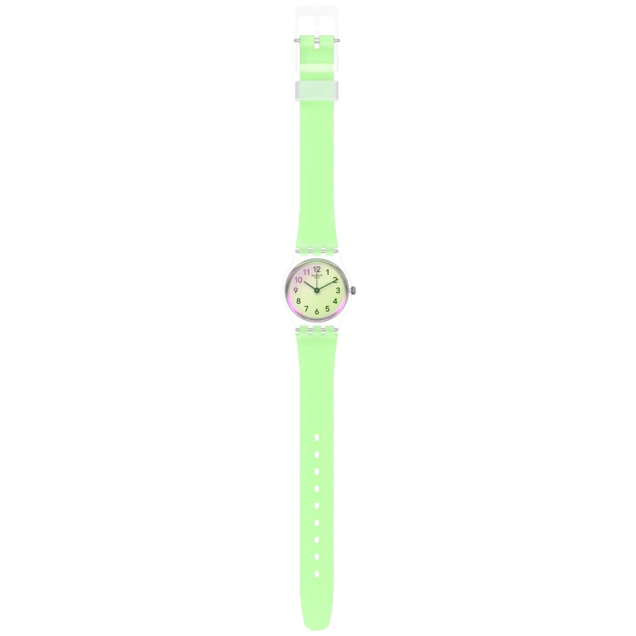 Наручные часы Swatch LK397. Эти современные и легкие женские часы относятся к коллекции Lady. С водозащитой до 30 метров они надежно защищают корпус от случайных брызг и капель дождя. Хезалитовое стекло, используемое в этих часах, обладает высокой прочностью и трудно разбивается; это легкий прозрачный пластик, который может прогибаться при ударах и не разлетается на осколки. Кроме того, хезалит устойчив к перепадам температуры и высокому давлению. Корпус часов выполнен из полимера, а механизм — кварцевый. Кварцевые часы обеспечивают большую точность по сравнению с механическими, с погрешностью хода около 20 секунд в месяц. Они не требуют завода, достаточно менять батарейку раз в несколько лет.