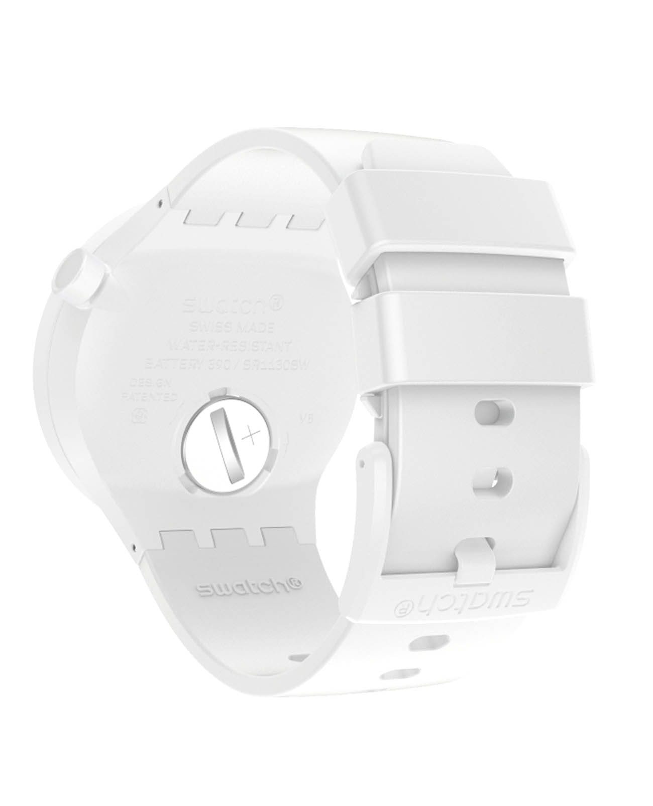 Часы Swatch SB03W100 — это стильный и современный аксессуар для тех, кто ценит лёгкость и комфорт. Часы идеально подойдут как для мужчин, так и для женщин. Прекрасный образец часов, выполненных полностью из материалов биологического происхождения: открытый механизм и биокерамикаБиокерамикаБиокерамика — это материал, который на две трети состоит из керамики, на одну треть — из биопластика. Он сочетает в себе лучшие качества обоих материалов и обладает прочностью и шелковистой на ощупь текстурой., которая создает ощущение шелковистости. Впечатляющий дизайн белого цвета — инновация в своем лучшем проявлении. На часовую, минутную стрелки нанесено люминесцентное покрытиеЛюминесцентное покрытиеПозволяет считывать показания времени в темноте. Производители наносят на стрелки, часовые индексы, безель или поверхность циферблата светонакопительный состав, дающий холодное свечение., которое светится в темноте, создавая необычное изображение. Водозащита 30 метров делает часы практичными для повседневного использования. Эти часы подойдут для повседневного ношения и станут ярким акцентом в вашем наряде.