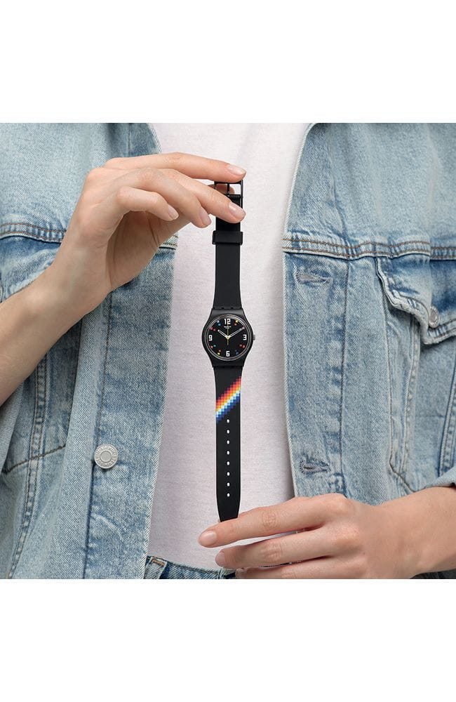 Часы Swatch SO28B705 — это стильный и современный аксессуар, который идеально подходит для повседневного ношения. Они имеют современный и привлекательный дизайн, который выделяет их среди других моделей. Корпус часов выполнен из высококачественного биоматериала, что делает их легкими и удобными. Циферблат украшен четкими и легко читаемыми цифрами, что обеспечивает отличную видимость времени. Стекло часов изготовлено из прочного хезалита, который устойчив к царапинам и ударам, что гарантирует долговечность изделия. Ремешок часов выполнен из силикона и имеет регулируемую длину, что позволяет удобно носить их на запястье. Внутри часов установлен надежный кварцевый механизм, который обеспечивает точность хода. Эти часы водонепроницаемы до 30 метров, что позволяет не беспокоиться о случайных брызгах или дождевых каплях. Swatch SO28B705 — это идеальный выбор для тех, кто ценит сочетание стиля, комфорта и функциональности в одном аксессуаре. Специальный механизм календарного колеса позволяет пиксельному дизайну на циферблате менять цвета один раз в день. Скелетонизированные белые стрелки.