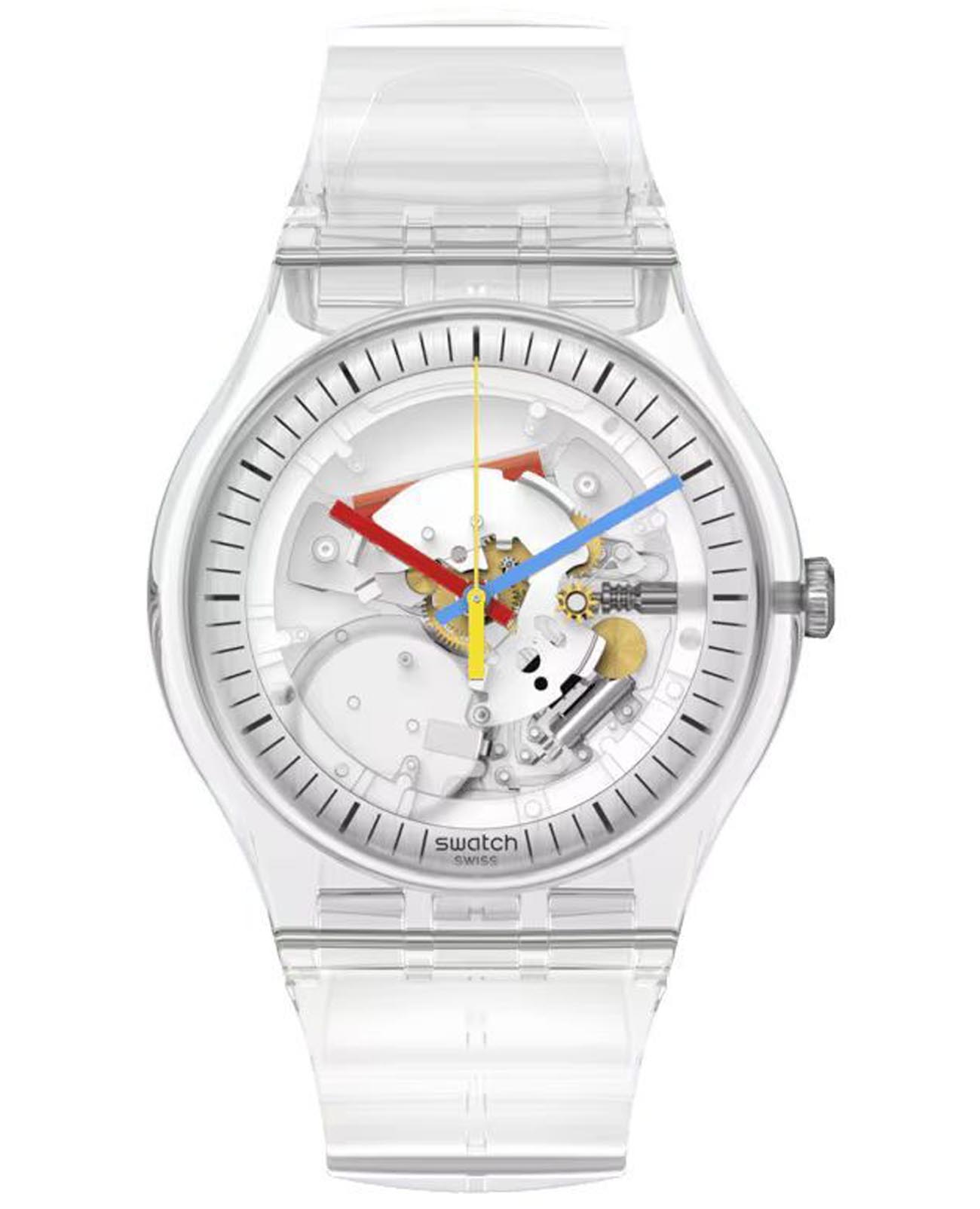 Часы Swatch SO29K100 —  стильный и надежный аксессуар. Современный взгляд на классику. Эти полностью прозрачные часы имеют корпус из биоматериала, циферблат с серебристым кольцом, черными индексами и цветными стрелками, и видимые элементы механизма. Ремешок из пластика TPU на стандартной застёжке. Внутри часов установлен надежный кварцевый механизм, который обеспечивает точность хода. Эти часы водонепроницаемы до 30 метров, что позволяет не беспокоиться о случайных брызгах или дождевых каплях. Swatch SO29K100 — это идеальный выбор для тех, кто ценит сочетание стиля, комфорта и функциональности в одном аксессуаре.