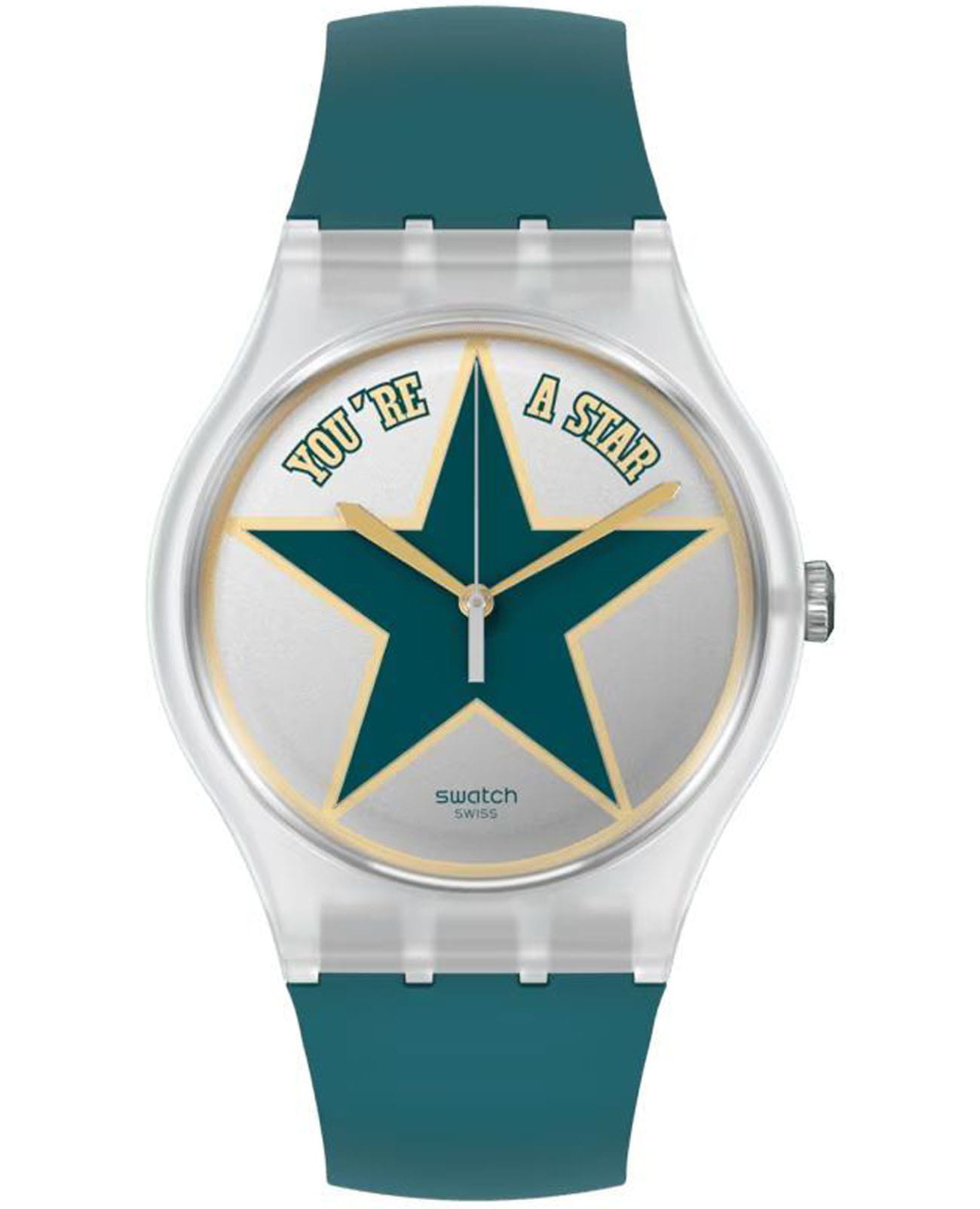 Часы Swatch SO29Z119 — стильный и надежный аксессуар. Модель часов выпущена ко Дню отца, имеет надпись "YOU’RE A STAR" ("ТЫ ЗВЕЗДА"). Корпус матовый полупрозрачный из биоматериала, циферблат серый зеркальный с зелено-золотой звездой. Зеленый ремешок из силикона с двумя однотонными тренчиками. В комплекте также четыре дополнительных тренчика из прозрачного силикона с принтом в виде эмоджи. Циферблат покрыт биостеклом. Ремешок на классической застежке. Внутри часов установлен надежный кварцевый механизм, который обеспечивает точность хода. Эти часы водонепроницаемы до 30 метров, что позволяет не беспокоиться о случайных брызгах или дождевых каплях. Swatch SO29Z119 — это идеальный выбор для тех, кто ценит сочетание стиля, комфорта и функциональности в одном аксессуаре.