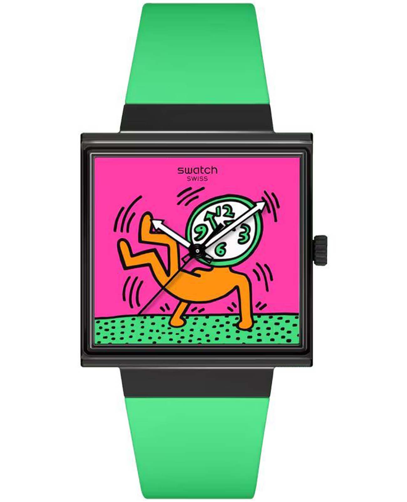 Swatch Square Bioceramic Standard SO34Z102 "BREAKS OFF" - это оригинальные квадратные часы с корпусом 41,8*41,8 мм из черной биокерамики с дизайнерским принтом. Модель оснащена кварцевым механизмом и водонепроницаемостью до 20 метров. Часы имеют зеленый матовый ремешок из биоматериала, черный корпус и стекло из биоматериала. Черные стрелки с люминесцентным покрытиемЛюминесцентное покрытиеПозволяет считывать показания времени в темноте. Производители наносят на стрелки, часовые индексы, безель или поверхность циферблата светонакопительный состав, дающий холодное свечение.. Эта экологичная модель унисекс сочетает инновационные материалы с ярким дизайном, вдохновленным оригинальным Swatch 1983 года, и подходит для тех, кто ценит минимализм и заботу об окружающей среде.