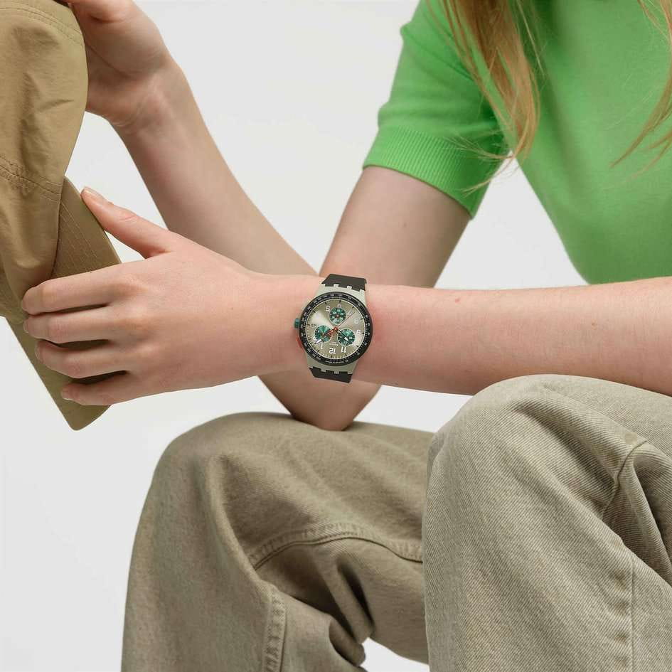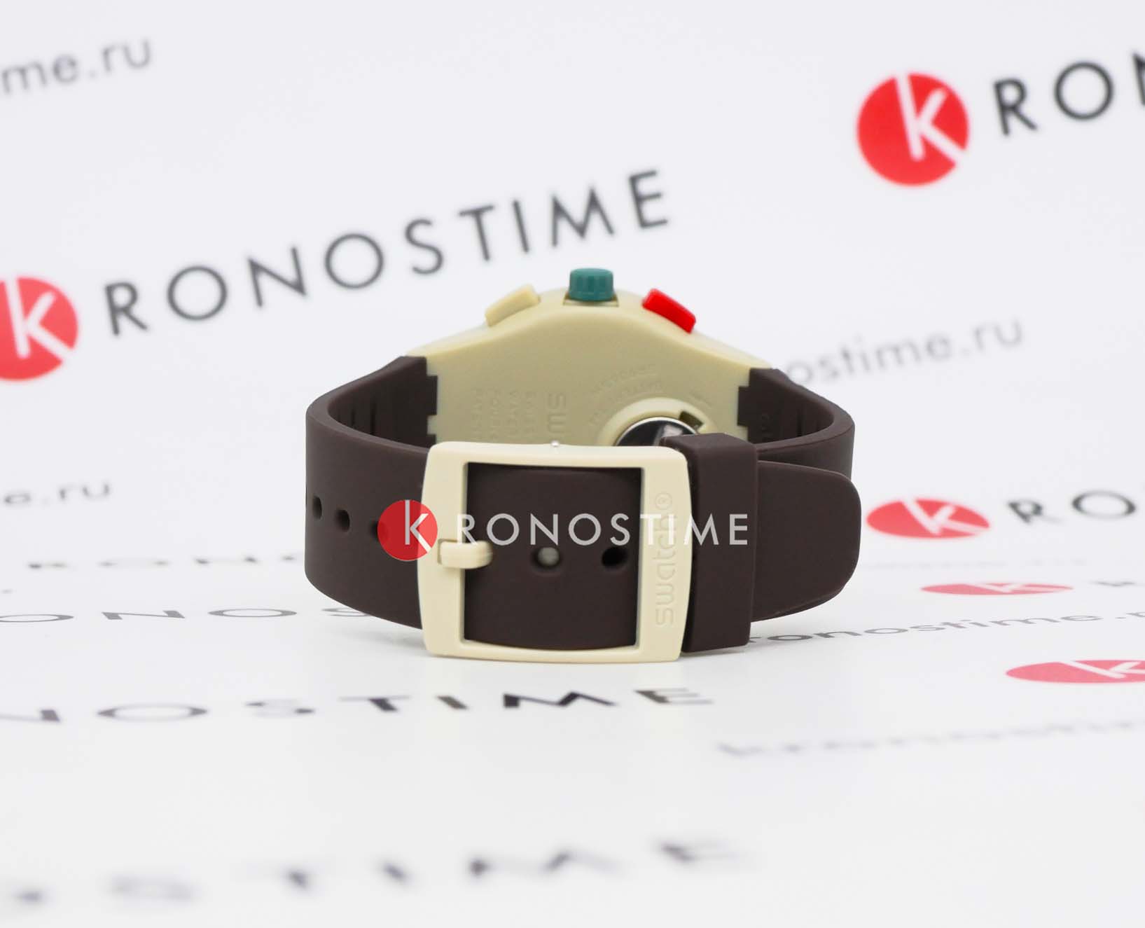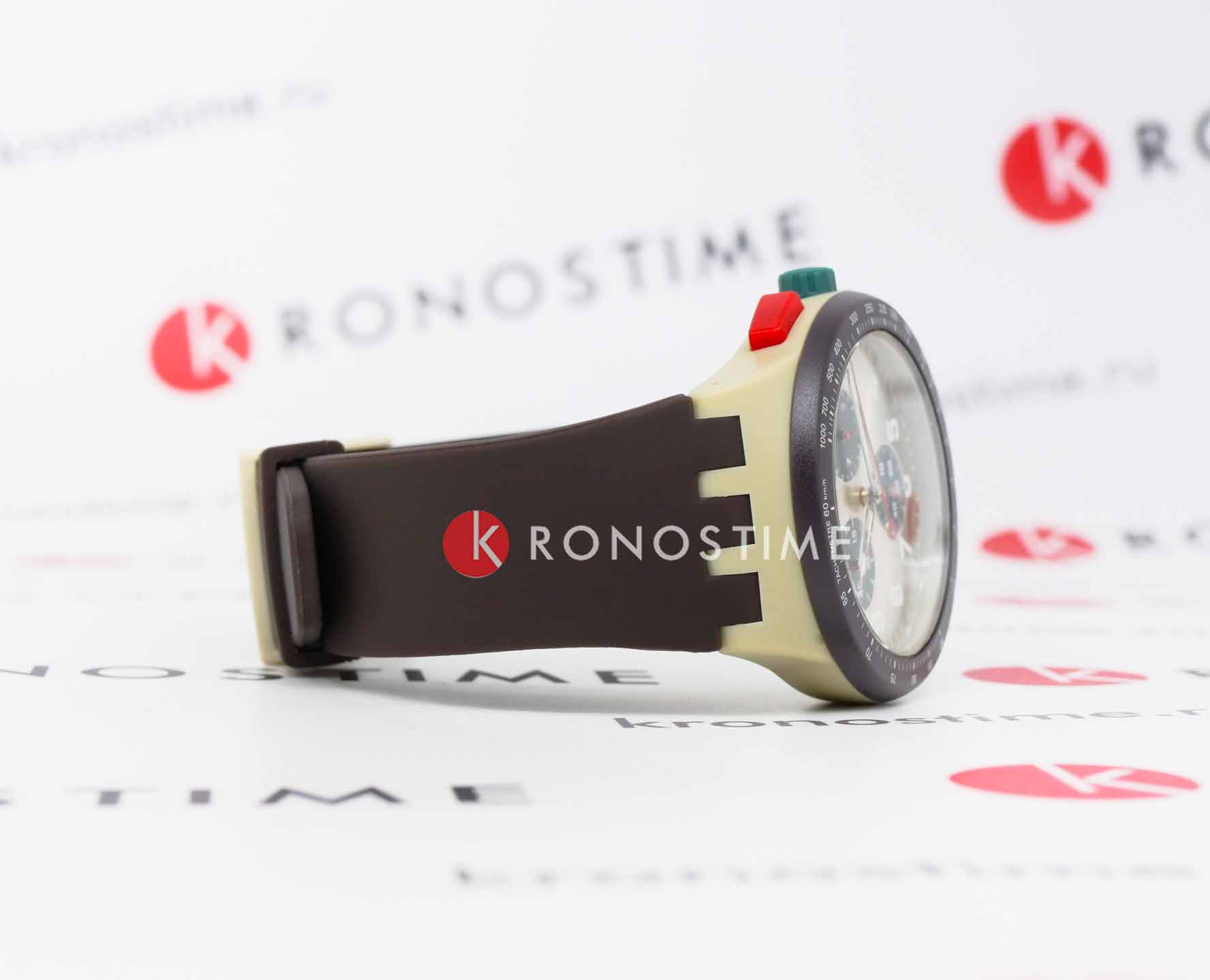 Часы Swatch SUST402 — это стильный и современный аксессуар для тех, кто ценит лёгкость и комфорт. Часы идеально подойдут как для мужчин, так и для женщин. Этот хронографХронографФункция позволяет измерять отрезки времени с особой точностью: часы, минуты, секунды. Верным признаком хронографа является наличие на циферблате 3 дополнительных окошек-счётчиков. привлекает внимание серебристым циферблатом c радиальной полировкой и тёмно-зелёными дополнительными циферблатами, светящимися в темноте благодаря люминесцентному покрытиюЛюминесцентное покрытиеПозволяет считывать показания времени в темноте. Производители наносят на стрелки, часовые индексы, безель или поверхность циферблата светонакопительный состав, дающий холодное свечение. часовой и минутной, красными секундной и вспомогательными стрелками, а также окошком указателем даты в положении между «4» и «3» часами. Матовый бежевый корпус располагает тёмно-коричневым безелемБезельВнешний ободок, закрепляющий стекло. В спортивных часах так называется поворотное кольцо с делениями на циферблате, выполняет роль таймера – замеряет отрезки времени на шкале. Неподвижный безель – элемент декора. Однонаправленно вращающийся безель на дайверских часах позволяет фиксировать моменты погружения и выныривания на поверхность. с белой тахиметрической шкалой и разноцветной заводной головкой и кнопками. Его дополняет матовый тёмно-коричневый ремешок с тренчиком в тон и матовая бежевая пряжка. Водозащита 30 метров делает часы практичными для повседневного использования. Эти часы подойдут для повседневного ношения и станут ярким акцентом в вашем наряде.