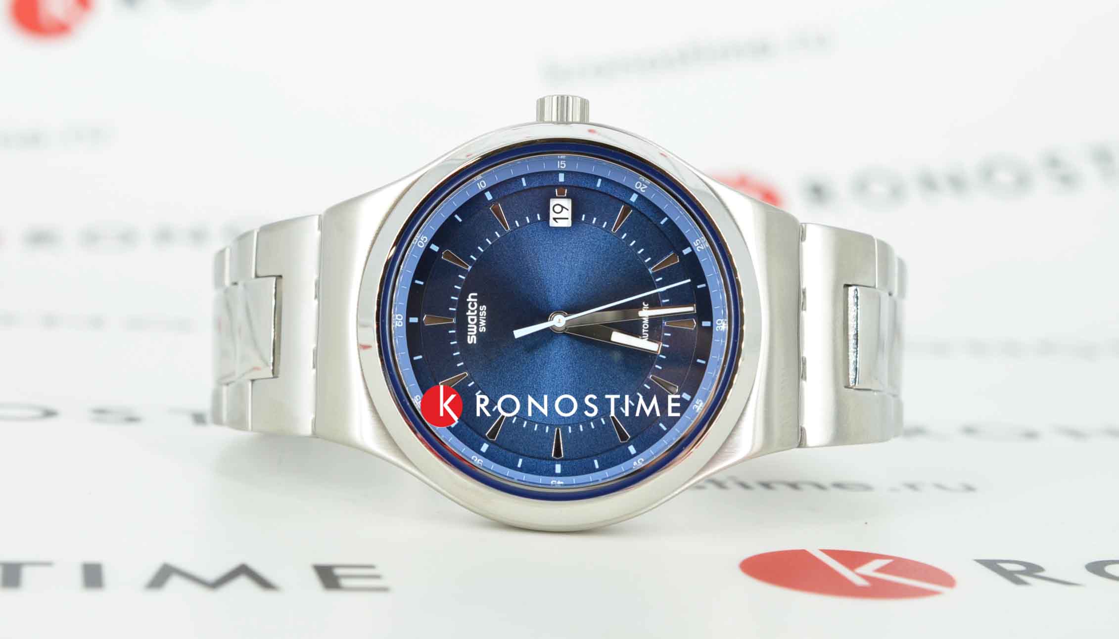 Часы Swatch YIS435G — это стильный и современный аксессуар для тех, кто ценит лёгкость и комфорт. Эти элегантные автоматические часы имеют синий циферблат с радиальной полировкой, серебристыми индексами и голубым внешним кольцом с белой минутной шкалой. Отсчет времени ведут голубая секундная, а также минутная и часовая стрелки с люминесцентным покрытиемЛюминесцентное покрытиеПозволяет считывать показания времени в темноте. Производители наносят на стрелки, часовые индексы, безель или поверхность циферблата светонакопительный состав, дающий холодное свечение.. В районе отметки 3 часа размещено белое окошко календаря с черным принтом. Блестящий корпус из нержавеющей стали, а через заднюю крышку с цифровым принтом просматривается механизм SISTEM51. Общий вид модели довершает браслет из нержавеющей стали с матовой и полированной отделкой и застёжкой «бабочка»Застёжка "бабочка"Такой вид застёжки дополняется предохранителями, помогающими избежать случайного раскрытия браслета. Обладают изящным исполнением. . Водозащита 30 метров делает часы практичными для повседневного использования. Эти часы подойдут для повседневного ношения и станут ярким акцентом в вашем наряде.