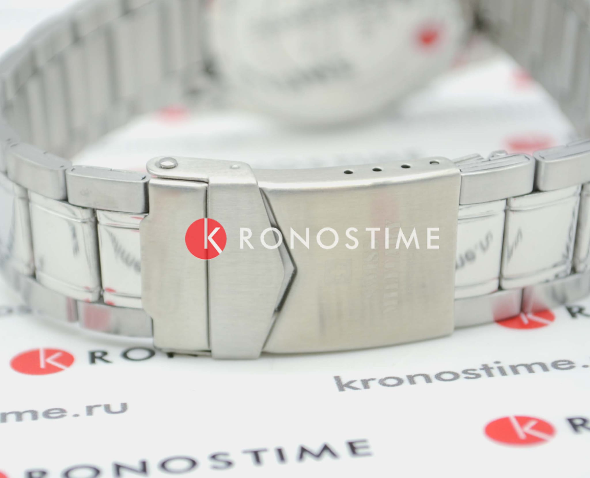 Кварцевый механизм с высокой точностью. Минеральное стеклоМинеральное стеклоМинеральное стекло представляет собой искусственно выращенный минерал кварца. Такое стекло отличается особой устойчивостью к повреждениям и царапинам. Уступает по некоторым качествам сапфировому стеклу. устойчивое к появлению царапин, обладающее высокой прозрачностью. Стрелки и метки с люминесцентным покрытиемЛюминесцентное покрытиеПозволяет считывать показания времени в темноте. Производители наносят на стрелки, часовые индексы, безель или поверхность циферблата светонакопительный состав, дающий холодное свечение.. Класс водозащиты: 50 метров, позволит защитить корпус от случайных брызг или капель дождя. Корпус часов изготовлен из нержавеющей стали. Браслет с раскладной застёжкойРаскладная застёжкаТакой тип застёжки используется только на браслетах из металла. Она никогда не раскрывается полностью, происходит разделение на 2 и более частей. Раскладывающая застёжка снизит вероятность потери часов к минимуму..