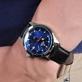 Кварцевый механизм с высокой точностью. Минеральное стеклоМинеральное стеклоМинеральное стекло представляет собой искусственно выращенный минерал кварца. Такое стекло отличается особой устойчивостью к повреждениям и царапинам. Уступает по некоторым качествам сапфировому стеклу. устойчивое к появлению царапин, обладающее высокой прозрачностью. Стрелки и метки с люминесцентным покрытиемЛюминесцентное покрытиеПозволяет считывать показания времени в темноте. Производители наносят на стрелки, часовые индексы, безель или поверхность циферблата светонакопительный состав, дающий холодное свечение.. Класс водозащиты: 50 метров, позволит защитить корпус от случайных брызг или капель дождя. Корпус часов изготовлен из нержавеющей стали. Кожаный ремешок с классической застежкой.
