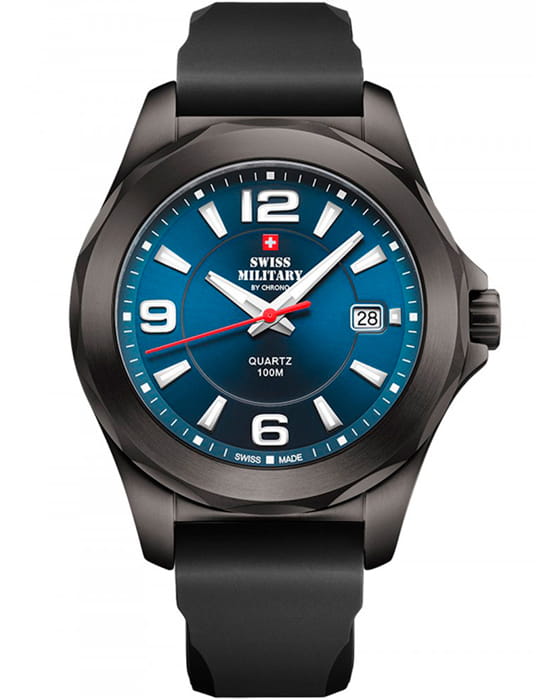 Мужские швейцарские наручные часы Swiss Military by Chrono SM34099.04, Кварцевый механизм с высокой точностью. Класс водозащиты: 100 метров, позволит защитить корпус от случайных брызг или капель дождя. Стрелки и метки с люминесцентным покрытиемЛюминесцентное покрытиеПозволяет считывать показания времени в темноте. Производители наносят на стрелки, часовые индексы, безель или поверхность циферблата светонакопительный состав, дающий холодное свечение.. Корпус выполнен из нержавеющей стали с PVD-покрытиемPVDУльтратонкое покрытие наносится в технике вакуумного напыления, сочетает в себе нитрид титана особой прочности со слоем золота или оксида хрома. Несёт в себе декоративную или защитную функцию.. Устойчивое к возникновению царапин минеральное стеклоМинеральное стеклоМинеральное стекло представляет собой искусственно выращенный минерал кварца. Такое стекло отличается особой устойчивостью к повреждениям и царапинам. Уступает по некоторым качествам сапфировому стеклу.. Силиконовый ремешок.