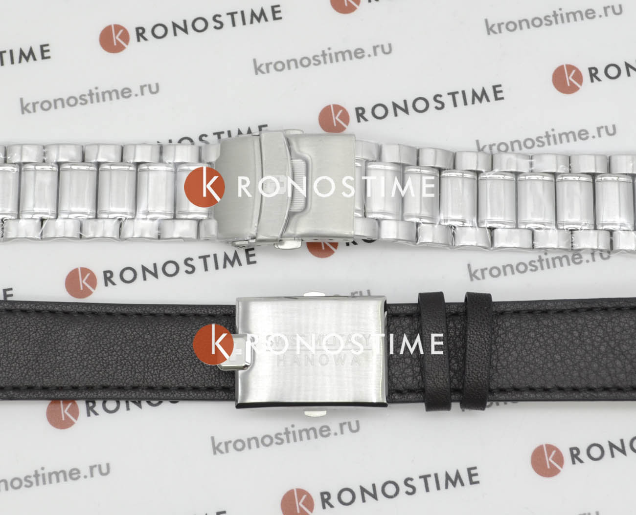Водозащита до 100 метров (10 ATM) делает часы подходящими для плавания и других водных видов спорта. Инновационная система лёгкой замены ремешков позволяет быстро и без усилий менять их, подстраивая часы под ваш стиль. Браслет из нержавеющей стали с застёжкой раскладной застёжкойРаскладная застёжкаТакой тип застёжки используется только на браслетах из металла. Она никогда не раскрывается полностью, происходит разделение на 2 и более частей. Раскладывающая застёжка снизит вероятность потери часов к минимуму. и кожаный ремешок дают возможность выбрать наиболее удобный вариант ношения.