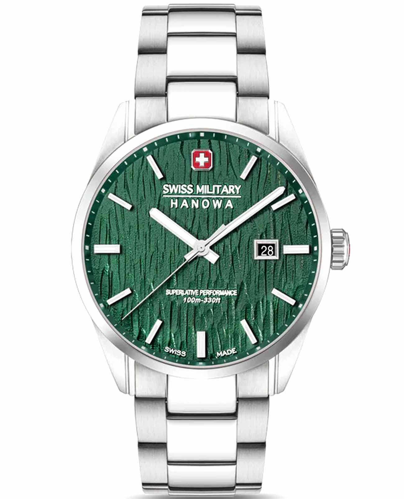 Мужские швейцарские часы Swiss Military Hanowa SMWGH0006101 – это элегантные часы, сочетающие в себе классический дизайн и современную функциональность. Корпус из нержавеющей стали диаметром 42 мм сбалансирован и элегантен. Сапфировое стеклоСапфировое стеклоПрочный и надёжный материал из кристалла сапфира синтетического происхождения, характеризующийся особой твёрдостью и устойчивостью к царапинам и повреждениям. с антибликовым покрытием защищает циферблат от царапин и обеспечивает отличную читаемость при любом освещении. Браслет с раскладной застёжкойРаскладная застёжкаТакой тип застёжки используется только на браслетах из металла. Она никогда не раскрывается полностью, происходит разделение на 2 и более частей. Раскладывающая застёжка снизит вероятность потери часов к минимуму. идеально дополняют дизайн часов, обеспечивая комфортное ношение. Люминесцентное покрытиеЛюминесцентное покрытиеПозволяет считывать показания времени в темноте. Производители наносят на стрелки, часовые индексы, безель или поверхность циферблата светонакопительный состав, дающий холодное свечение. стрелок и меток позволит вам следить за временем даже в полной темноте. Индикатор даты в положении 3 часа. Водонепроницаемость до 100 метров хорошо подходят для повседневного ношения и занятий водными видами спорта.