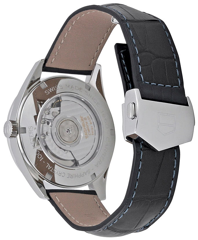 Часы предназначены для мужчин, живущих в ритме динамичной городской жизни. TAG Heuer Carrera WAS2111.FC6293, механический механизм (автоматический калибр) с высокой точностью. Сапфировое стеклоСапфировое стеклоПрочный и надёжный материал из кристалла сапфира синтетического происхождения, характеризующийся особой твёрдостью и устойчивостью к царапинам и повреждениям. устойчивое к появлению царапин, обладающее высокой прозрачностью. Класс водозащиты: 100 метров, позволит плавать, нырять и заниматься другими водными видами спорта. Корпус часов изготовлен из нержавеющей стали. Кожаный ремешок с классической застежкой.