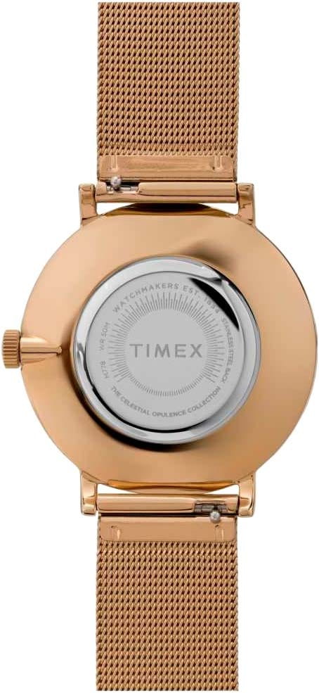 Наручные часы Timex TW2U67100 — изысканный аксессуар, вдохновленный звездами ночного неба, который подчеркнет вашу элегантность и стиль. Эти часы произведены в США и оснащены надежным кварцевым механизмом, что гарантирует их точность и долговечность. Корпус часов выполнен из нержавеющей стали с износостойким PVDPVDУльтратонкое покрытие наносится в технике вакуумного напыления, сочетает в себе нитрид титана особой прочности со слоем золота или оксида хрома. Несёт в себе декоративную или защитную функцию. покрытием, придающим им благородный вид. Серебристый циферблат украшен изящными кристаллами, создающими эффект звездного неба, а метки в виде точек добавляют часам утонченности. Рифленая заводная головка облегчает настройку времени. Часы оснащены прочным минеральным стекломМинеральное стеклоМинеральное стекло представляет собой искусственно выращенный минерал кварца. Такое стекло отличается особой устойчивостью к повреждениям и царапинам. Уступает по некоторым качествам сапфировому стеклу., устойчивым к царапинам, и водозащитой 50WR, что защищает их от случайных контактов с водой. Диаметр корпуса составляет 38 мм, а ширина браслета — 18 мм, что обеспечивает удобную посадку на запястье. Стальной браслет миланского плетения с PVDPVDУльтратонкое покрытие наносится в технике вакуумного напыления, сочетает в себе нитрид титана особой прочности со слоем золота или оксида хрома. Несёт в себе декоративную или защитную функцию. покрытием и раскладным замкомРаскладной замокДанный вариант застежки используется только на часах с металлическим браслетом. Отличительная особенность такого крепления в том, что длина браслета становится универсальной и вы можете самостоятельно отрегулировать нужный вам размер – застежка просто двигается по браслету часов. добавляет модели утонченности и комфорта. Этот аксессуар станет изысканным дополнением вашего образа, привнося в него нотку роскоши и элегантности.