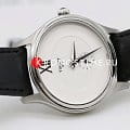 Циферблат имеет минималистичное обличье, римская цифра 12 добавляет винтажный тон. Чёрно-белое исполнение модели позволяет использовать её для повседневной, деловой, вечерней одежды. Кварцевый калибр ETA 980.153. Ремешок из натуральной кожи. Миниатюрный счётчик секунд. Корпус из нержавеющей стали 316L. Функция EOLEOLПредставляет собой систему, уведомляющую владельца часов о необходимости замены элемента питания. За 2 недели до полного разряда батарейки секундная стрелка перестаёт ходить чётко и начинает перепрыгивать на 3-4 деления.. Габариты: 28 x 31,4 x 6,6 мм.