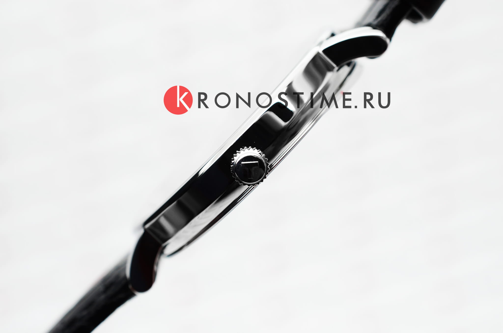 Наручные часы с чёрным кожаным ремешком, поверхность которого имеет тиснение под кожу крокодила, выгодно подчеркнут ваш безупречный вкус. Индикатор разряда батарейки- EOLEOLПредставляет собой систему, уведомляющую владельца часов о необходимости замены элемента питания. За 2 недели до полного разряда батарейки секундная стрелка перестаёт ходить чётко и начинает перепрыгивать на 3-4 деления.. Строгий минималистический дизайн циферблата с римскими цифрами делает модель лучшим вариантом для дополнения делового костюма. Высокая точность хода кварцевого калибра ETA 902.101 с 4 камнями. Устойчивое к появлению царапин стекло из сапфирaСапфировое стеклоПрочный и надёжный материал из кристалла сапфира синтетического происхождения, характеризующийся особой твёрдостью и устойчивостью к царапинам и повреждениям.. Водостойкость 3 бар.