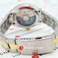 Светлый циферблат в сочетании с серебром нержавеющей стали станет гармоничным дополнением к любому стилю одежды, выделяя индивидуальные особенности образа. Наручные часы оснащены швейцарским автоматическим калибром ETA Powermatic 80Powermatic 80Эксклюзивный калибр от швейцарской компании ETA с увеличенным запасом хода до 80 часов за счёт удлинённой заводной пружины. Характеризуется улучшенной системой спуска со сниженным трением. с резервом хода до 80 часов. Сапфировое стекло отличается устойчивостью к появлению царапин. Стальные браслет и корпус с золотистым PVD-покрытиемPVDУльтратонкое покрытие наносится в технике вакуумного напыления, сочетает в себе нитрид титана особой прочности со слоем золота или оксида хрома. Несёт в себе декоративную или защитную функцию.. Сохранение водонепроницаемости до 100 метров. Люминесцентная подсветкаЛюминесцентное покрытиеПозволяет считывать показания времени в темноте. Производители наносят на стрелки, часовые индексы, безель или поверхность циферблата светонакопительный состав, дающий холодное свечение.. . Апертура даты. Габариты: 33 x 33 x 9,8 мм.