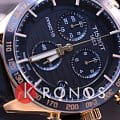 Часы отдают должное эпохе мотоспорта 1960-х годов, отражая дух скорости и спортивных побед в своём оформлении. Часы оснащены кварцевым механизмом ETA G10.212 с высокой точностью хода. Сапфировое стекло с антибликовым покрытием препятствует возникновению царапин на поверхности. Керамический безельБезельВнешний ободок, закрепляющий стекло. В спортивных часах так называется поворотное кольцо с делениями на циферблате, выполняет роль таймера – замеряет отрезки времени на шкале. Неподвижный безель – элемент декора. Однонаправленно вращающийся безель на дайверских часах позволяет фиксировать моменты погружения и выныривания на поверхность.. Люминесцентная подсветкаЛюминесцентное покрытиеПозволяет считывать показания времени в темноте. Производители наносят на стрелки, часовые индексы, безель или поверхность циферблата светонакопительный состав, дающий холодное свечение.. . ХронографХронографФункция позволяет измерять отрезки времени с особой точностью: часы, минуты, секунды. Верным признаком хронографа является наличие на циферблате 3 дополнительных окошек-счётчиков., секундомер, шкала тахиметраТахиметрРазмеченная шкала, располагается на ободке или безеле часов. Тахиметр позволяет рассчитать скорость на определённом участке пути, расстояние измеряется в километрах или милях., календарь. Габариты: 42 x 42 x 12,1 мм.