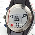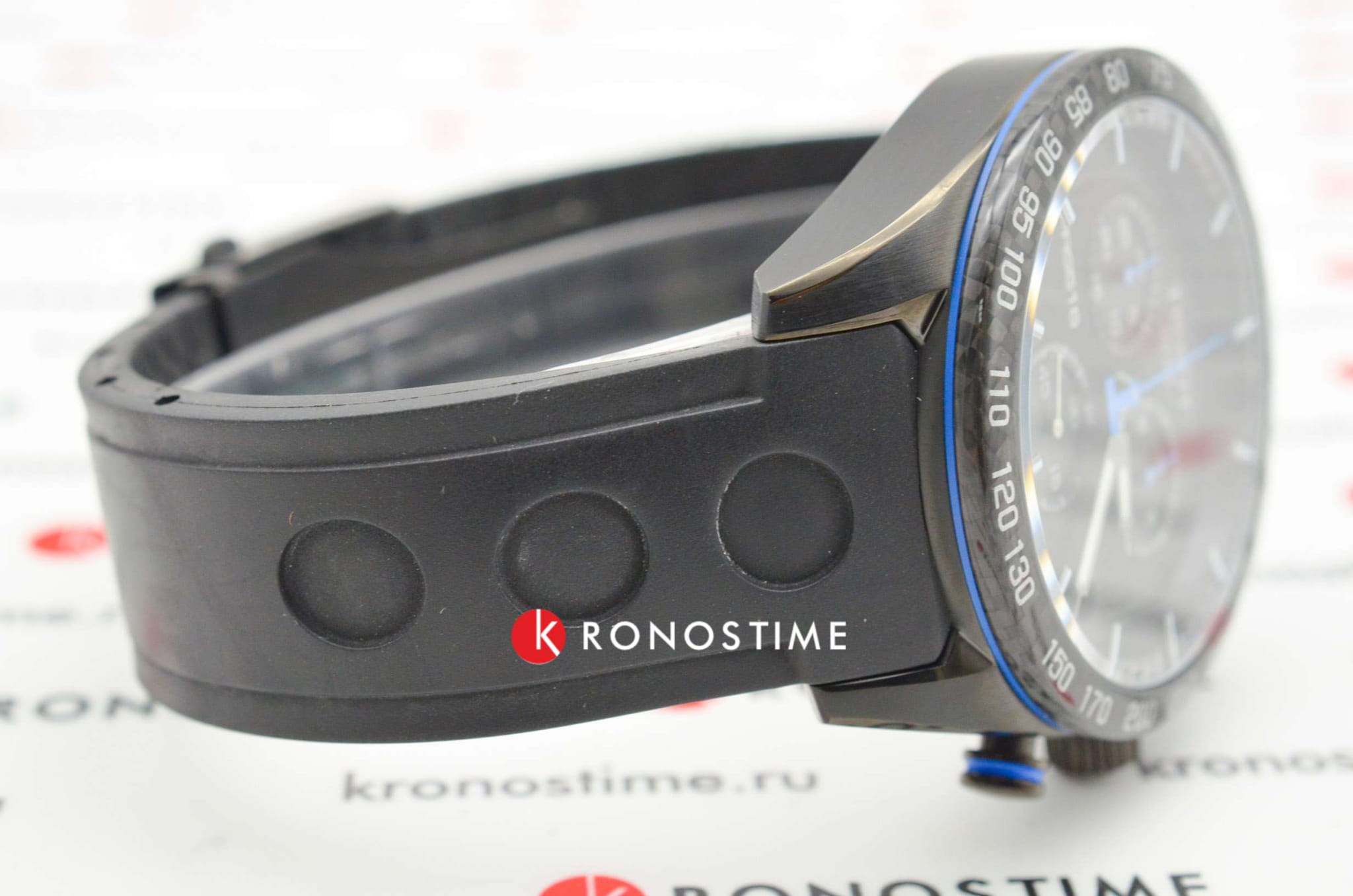 Тёмный циферблат с оригинальным узором отличается спортивным дизайном, такое исполнение актуально при любых обстоятельствах. Часы имеют голубые цветовые акценты, добавляющие динамичности. Кварцевый хронографХронографФункция позволяет измерять отрезки времени с особой точностью: часы, минуты, секунды. Верным признаком хронографа является наличие на циферблате 3 дополнительных окошек-счётчиков. с механизмом ETA G10.212 работает от батарейки, отпадает необходимость постоянного завода. Водостойкость до 10 бар. Керамический узорчатый безельБезельВнешний ободок, закрепляющий стекло. В спортивных часах так называется поворотное кольцо с делениями на циферблате, выполняет роль таймера – замеряет отрезки времени на шкале. Неподвижный безель – элемент декора. Однонаправленно вращающийся безель на дайверских часах позволяет фиксировать моменты погружения и выныривания на поверхность.. Сапфировое стекло с антибликовым покрытием. Шкала тахиметраТахиметрРазмеченная шкала, располагается на ободке или безеле часов. Тахиметр позволяет рассчитать скорость на определённом участке пути, расстояние измеряется в километрах или милях.. Корпус из нержавеющей стали 316L. Люминесцентная подсветкаЛюминесцентное покрытиеПозволяет считывать показания времени в темноте. Производители наносят на стрелки, часовые индексы, безель или поверхность циферблата светонакопительный состав, дающий холодное свечение.. Каучуковый ремешок. . Секундомер, индикация даты. Габариты: 42 x 42 x 12,1 мм.