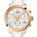 TISSOT T0954173611700 T-Sport Quickster Quartz Chronograph - женские кварцевые наручные часы Корпус этих часов среднего размера (42 мм) и выполнен из нержавеющей стали L316 с PVD-покрытием цвета розового золота Модель TISSOT T0954173611700 T-Sport Quickster Quartz Chronograph имеет устойчивое к царапинам сапфировое стекло, ремешок из натуральной кожи белого цвета, белый циферблат Калибр механизма: ETA G10211 Класс водозащиты: 100 м / 10 АТМ (разрешается плавание и ныряние без акваланга) Дополнительные функции и особенности: отображение числа, хронограф (секундомер), тахиметр Полная заводская комплектация TISSOT: оригинальные часы, фирменная коробка, инструкция, сервисная книжка, роман о часовой фабрике, миникаталог, замшевый фирменный чехол черного цвета для хранения и/или переноски часов, кассовый и товарный чеки Международная гарантия 2 года Производство и сборка: Швейцария