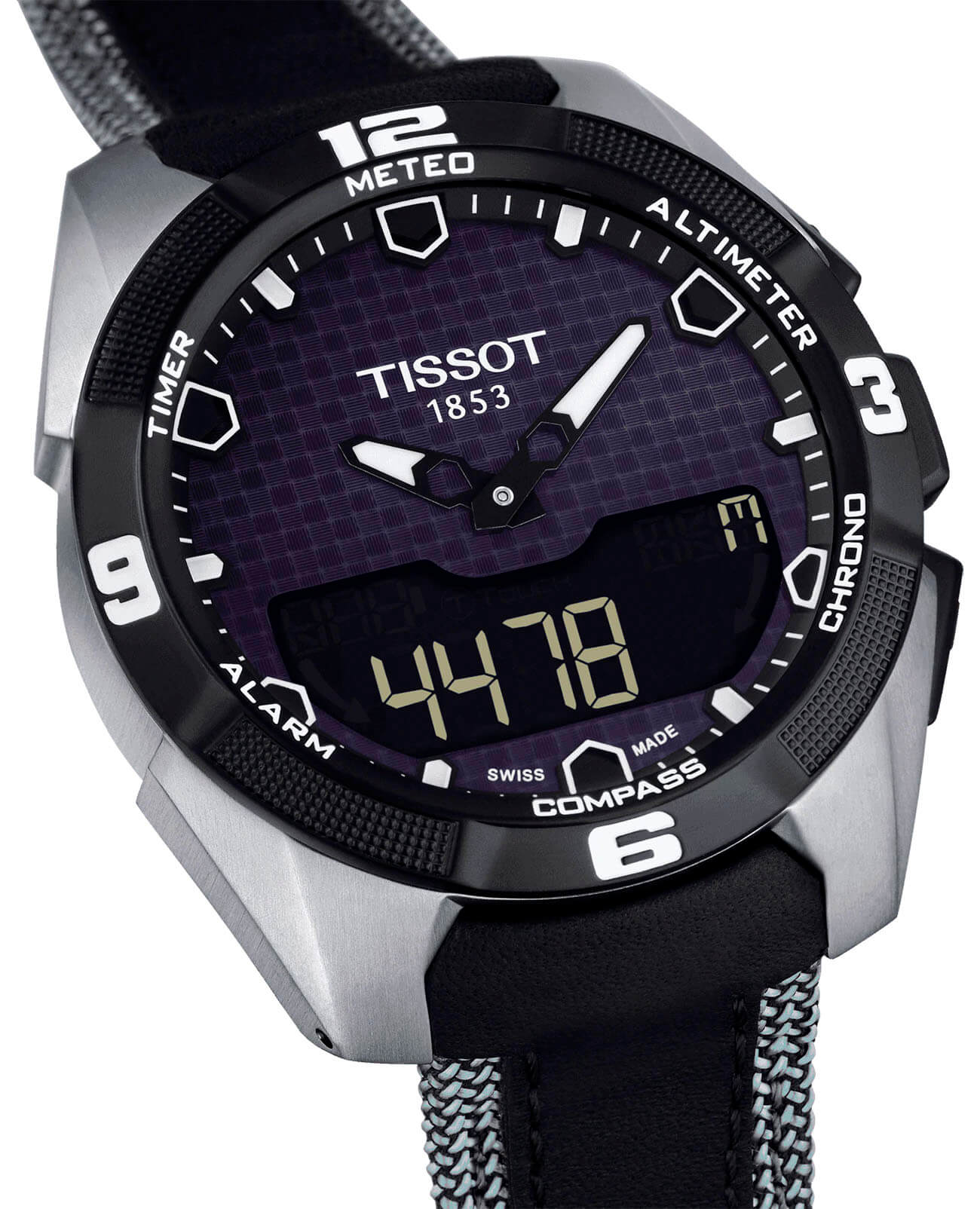 Современная модель в спортивном и динамичном стиле оснащена удобным экраном с тактильным сапфировым стеклом. Часы работают от кварцевого механизма ETA E84.301, также они способны получать питание от . Прибор для измерения времени превращён в многофункциональный мини-компьютер, есть опции альтиметра, компаса, таймера, будильника, вечного календаряВечный календарьКлассическое часовое усложнение, представляющее собой календарь, рассчитанный на несколько лет вперёд (стандартно – до 2099 года). Определяет текущую дату, день недели, месяц., хронографаХронографФункция позволяет измерять отрезки времени с особой точностью: часы, минуты, секунды. Верным признаком хронографа является наличие на циферблате 3 дополнительных окошек-счётчиков.. Титановый корпус с чёрным PVD-покрытиемPVDУльтратонкое покрытие наносится в технике вакуумного напыления, сочетает в себе нитрид титана особой прочности со слоем золота или оксида хрома. Несёт в себе декоративную или защитную функцию. минимизирует негативное воздействие магнитных полей. Габариты: 45 x 45 x 13 мм.