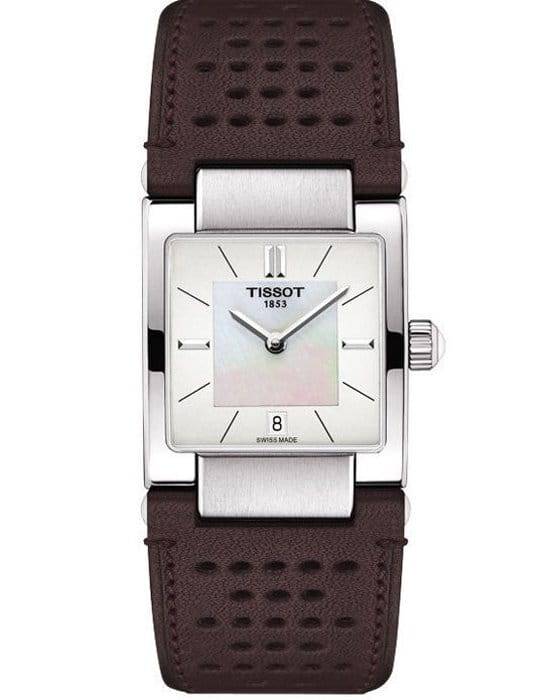 TISSOT T0903101611100 T-Trend T02 Quartz - женские кварцевые наручные часы Корпус этих часов небольшого размера (23 мм) и выполнен из нержавеющей стали L316 металлического цвета Модель TISSOT T0903101611100 T-Trend T02 Quartz имеет устойчивое к царапинам сапфировое стекло, ремешок из натуральной кожи коричневого цвета, белый циферблат Калибр механизма: ETA F03111 Класс водозащиты: 50 м / 5 АТМ (избыточная защита от брызг, допускается кратковременное нахождение в воде) Дополнительные функции и особенности: отображение числа Полная заводская комплектация TISSOT: оригинальные часы, фирменная коробка, инструкция, сервисная книжка, роман о часовой фабрике, миникаталог, замшевый фирменный чехол черного цвета для хранения и/или переноски часов, кассовый и товарный чеки Международная гарантия 2 года Производство и сборка: Швейцария