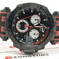 Задняя крышка имеет гравировку со знаком "93" - под этим номером выступает спортсмен. Дизайнеры расставили по циферблату и ремешку из прочного каучука ярко-оранжевые акценты. БезельБезельВнешний ободок, закрепляющий стекло. В спортивных часах так называется поворотное кольцо с делениями на циферблате, выполняет роль таймера – замеряет отрезки времени на шкале. Неподвижный безель – элемент декора. Однонаправленно вращающийся безель на дайверских часах позволяет фиксировать моменты погружения и выныривания на поверхность. стилизован под шину мотоцикла. В комплектацию входит оригинальная коробка в виде шлема. Кварцевый механизм ETA G10.212 отвечает за высокую точность хода. Корпус с чёрно-серым PVD-покрытиемPVDУльтратонкое покрытие наносится в технике вакуумного напыления, сочетает в себе нитрид титана особой прочности со слоем золота или оксида хрома. Несёт в себе декоративную или защитную функцию.. Люминесцентная подсветкаЛюминесцентное покрытиеПозволяет считывать показания времени в темноте. Производители наносят на стрелки, часовые индексы, безель или поверхность циферблата светонакопительный состав, дающий холодное свечение.. Сапфировое стекло с антибликовым покрытием. ХронографХронографФункция позволяет измерять отрезки времени с особой точностью: часы, минуты, секунды. Верным признаком хронографа является наличие на циферблате 3 дополнительных окошек-счётчиков., секундомер, индикация текущего числа. Габариты: 47,6 x 43 x 12,3 мм.