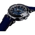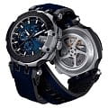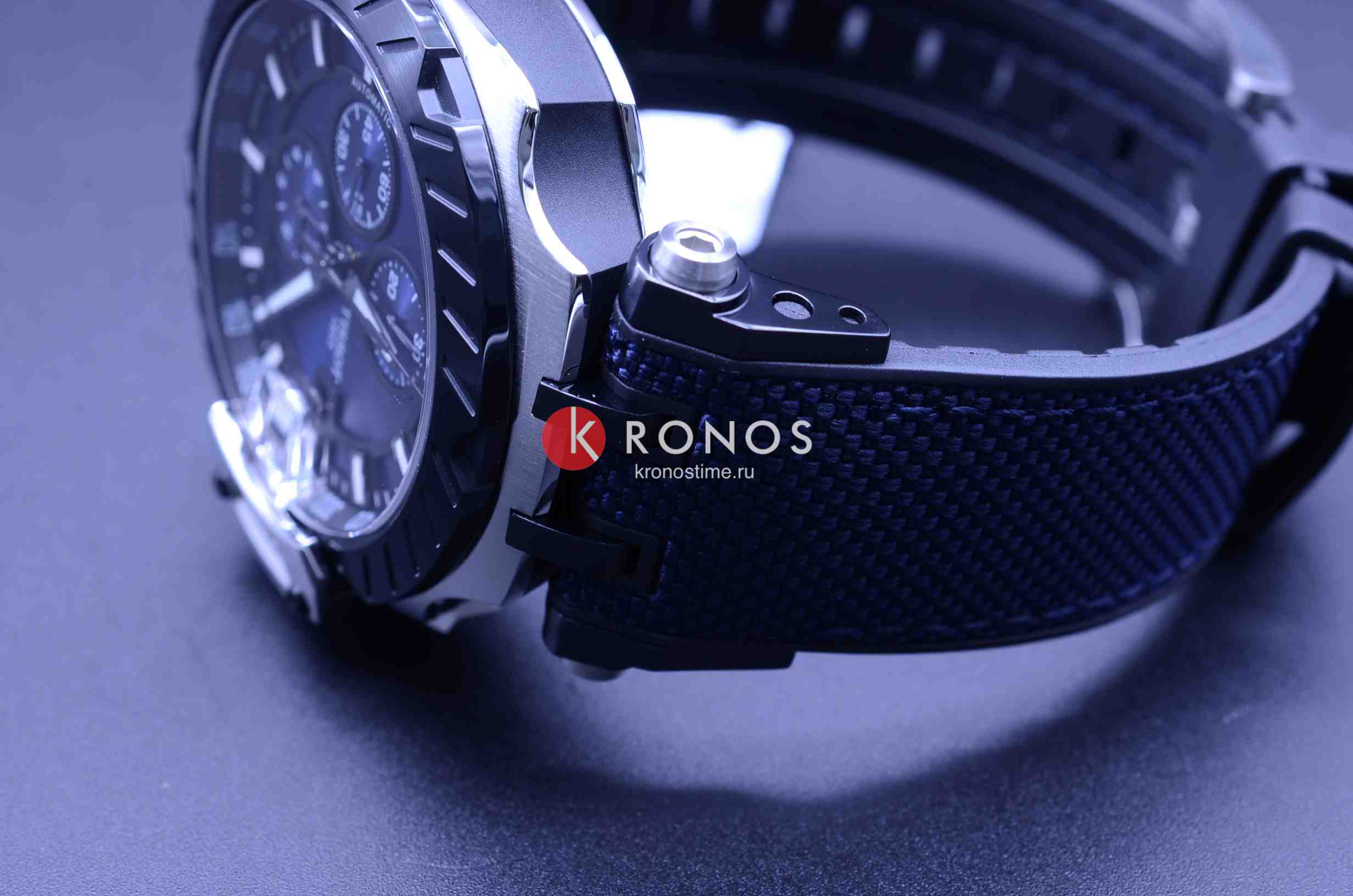 БезельБезельВнешний ободок, закрепляющий стекло. В спортивных часах так называется поворотное кольцо с делениями на циферблате, выполняет роль таймера – замеряет отрезки времени на шкале. Неподвижный безель – элемент декора. Однонаправленно вращающийся безель на дайверских часах позволяет фиксировать моменты погружения и выныривания на поверхность. выполнен в образе тормозного диска, чёрный цвет сочетается с синими переливами массивного циферблата со счётчиками хронографаХронографФункция позволяет измерять отрезки времени с особой точностью: часы, минуты, секунды. Верным признаком хронографа является наличие на циферблате 3 дополнительных окошек-счётчиков.. Задняя крышка сделана в виде колеса. Механические часы с автоподзаводом оснащены швейцарским механизмом C01.211, сохраняющим запас хода до 40 часов. Корпус из долговечной стали 316L с PVD-покрытиемPVDУльтратонкое покрытие наносится в технике вакуумного напыления, сочетает в себе нитрид титана особой прочности со слоем золота или оксида хрома. Несёт в себе декоративную или защитную функцию.. Ремешок из каучука и натуральной кожи. Секундомер, календарь, тахиметрТахиметрРазмеченная шкала, располагается на ободке или безеле часов. Тахиметр позволяет рассчитать скорость на определённом участке пути, расстояние измеряется в километрах или милях.. Габариты: 48,8 x 45 x 16,6 мм.