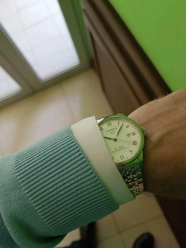 Tissot Le Locle. Механические часы с автоподзаводом посвящены 150-ти летнему юбилею бренда Tissot, имеют оригинальный орнамент на циферблате «парижские гвозди». Оснащены швейцарским механизмом Powermatic 80 (запас хода больше 3 суток). Универсальный классический облик. Винтажные элементы. Прозрачная задняя крышка с оригинальными узорами. Отображение текущей даты в положении 3 часа. Водонепроницаемость: 30 метров, позволит защитить корпус от случайных брызг или капель дождя. Сапфировое стеклоСапфировое стеклоПрочный и надёжный материал из кристалла сапфира синтетического происхождения, характеризующийся особой твёрдостью и устойчивостью к царапинам и повреждениям. с антибликовым покрытием. Стальной браслет на застёжке-бабочке с кнопкамиЗастёжка "бабочка"Такой вид застёжки дополняется предохранителями, помогающими избежать случайного раскрытия браслета. Обладают изящным исполнением. .