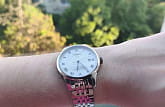 Очень красивые часы! Светлый циферблат с узором и римскими цифрами смотрится просто изумительно. Размер мне подошел идеально, на средней руке сидит отлично. Завод держит долго, после ношения ходят еще минимум сутки, так что можно спокойно чередовать с другими часами
