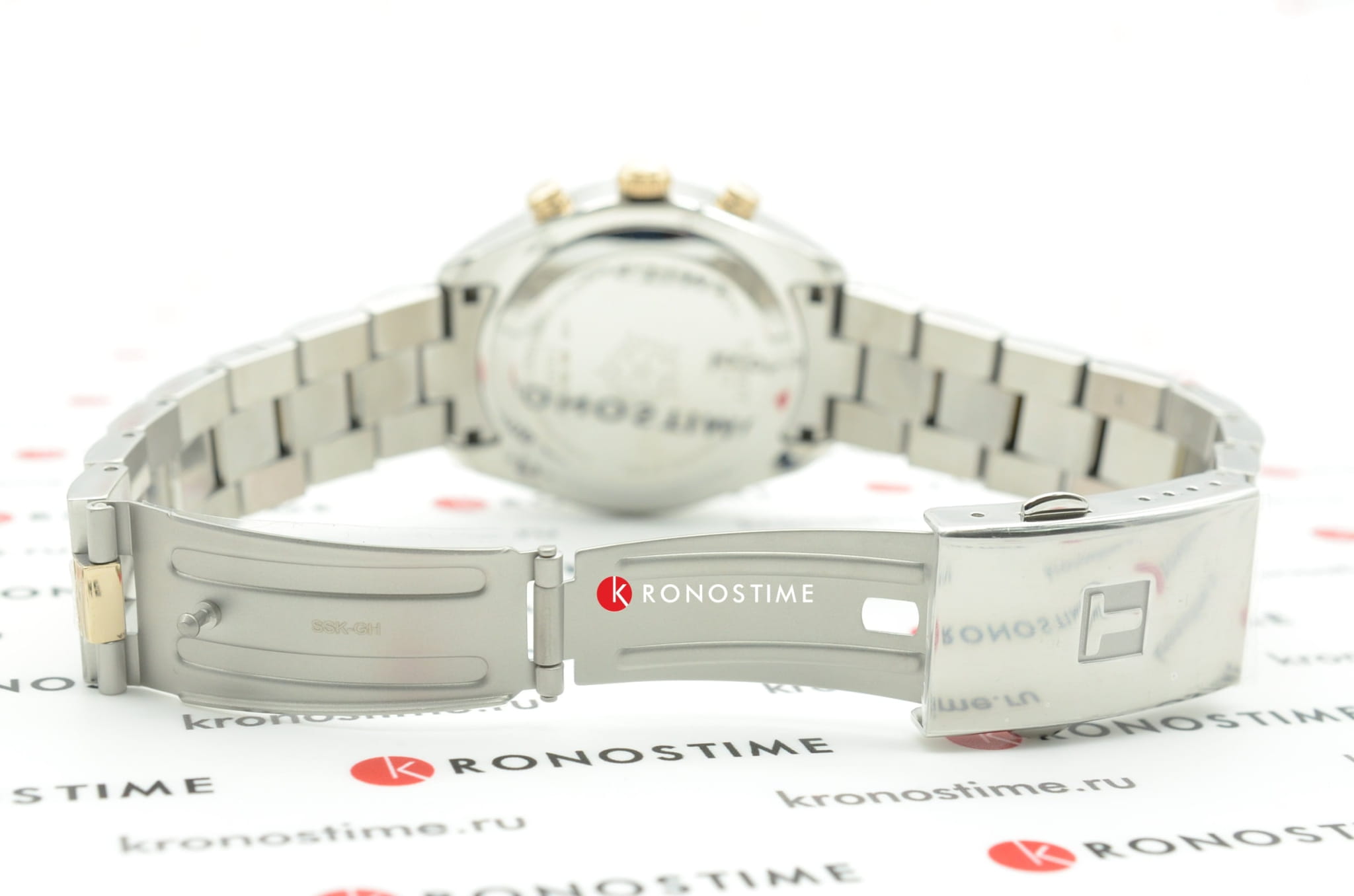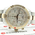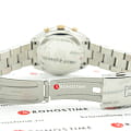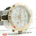 Швейцарские наручные часы имеют перламутровый циферблат, инкрустированный бриллиантами, драгоценные камни используются вместо меток часов. Корпус и центральные звенья браслета имеют PVD-покрытие цвета розового золота, оно характеризуется долговечностью и устойчивостью к царапинам. Кварцевый механизм ETA G15.212. Водонепроницаемость 100 метров. Хронограф, секундомер, апертура даты. Габариты: 38 x 38 x 10,5 мм.