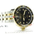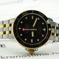 Роскошная модель с золотистым PVD-покрытиемPVDУльтратонкое покрытие наносится в технике вакуумного напыления, сочетает в себе нитрид титана особой прочности со слоем золота или оксида хрома. Несёт в себе декоративную или защитную функцию. станет неотъемлемой частью делового или повседневного образа, прекрасно подойдёт в качестве подарка. Дайверские часы сохраняют водостойкость при давлении 30 бар, они имеют завинчивающуюся заводную головку, кнопки и скелетонизированную заднюю крышку. Сквозь неё можно наблюдать за движением составных частей калибра Powermatic 80Powermatic 80Эксклюзивный калибр от швейцарской компании ETA с увеличенным запасом хода до 80 часов за счёт удлинённой заводной пружины. Характеризуется улучшенной системой спуска со сниженным трением. с увеличенным запасом хода 80 часов. Керамический безельБезельВнешний ободок, закрепляющий стекло. В спортивных часах так называется поворотное кольцо с делениями на циферблате, выполняет роль таймера – замеряет отрезки времени на шкале. Неподвижный безель – элемент декора. Однонаправленно вращающийся безель на дайверских часах позволяет фиксировать моменты погружения и выныривания на поверхность.. Сапфировое стекло. Застёжка с удлинением для дайверовУдлинение для дайверовЗастёжка с удлинением для дайверов представляет собой безопасное крепление, которое позволяет надевать часы поверх гидрокостюма. Гибкая застёжка удлиняется на 1-2 миллиметра.. Календарь. Габариты: 43 x 43 x 12,7 мм.