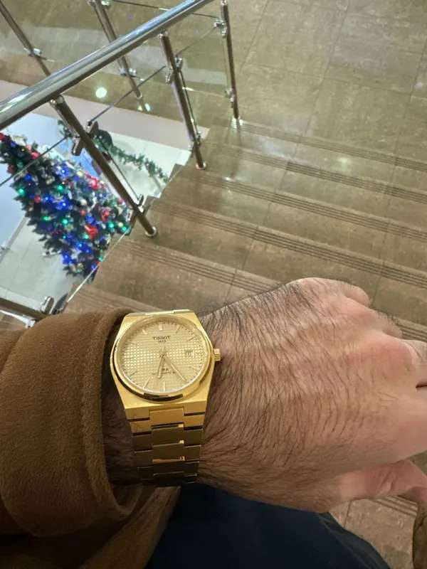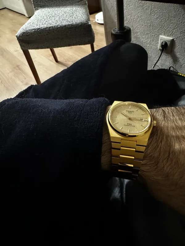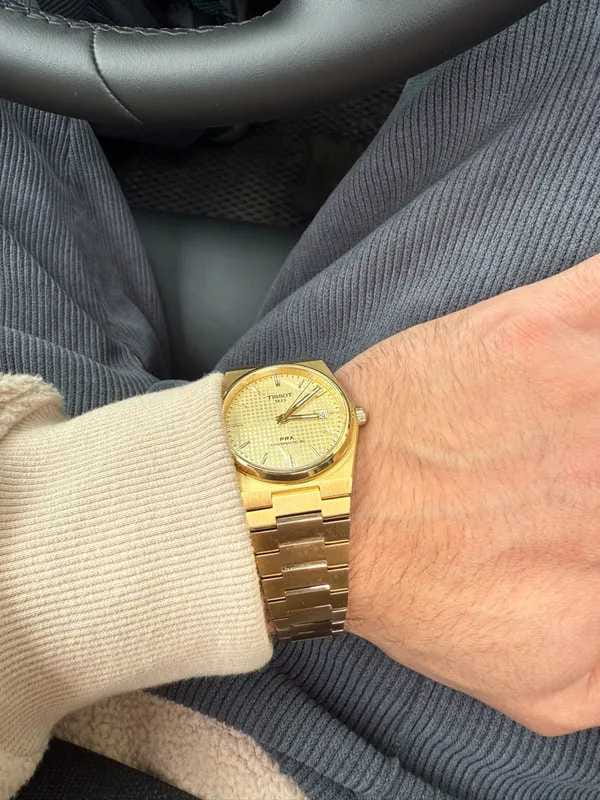 Tissot PRX Powermatic 80 (модель T137.407.33.021.00) – это элегантные часы, сочетающие современный дизайн с высокими технологиями. Корпус диаметром 40 мм выполнен из нержавеющей стали 316L с жёлтым PVD-покрытиемPVDУльтратонкое покрытие наносится в технике вакуумного напыления, сочетает в себе нитрид титана особой прочности со слоем золота или оксида хрома. Несёт в себе декоративную или защитную функцию., придающим часам роскошный вид. Шампанского оттенка циферблат украшен узором "шашечки" и защищён сапфировым стекломСапфировое стеклоПрочный и надёжный материал из кристалла сапфира синтетического происхождения, характеризующийся особой твёрдостью и устойчивостью к царапинам и повреждениям. с антибликовым покрытиемАнтибликовое покрытиеСлой оксида металла в 0,13-0,3 микрон, благодаря которому стекло часов не бликует и не отражает свет. Антибликовое покрытие уменьшает отражение света в 10 раз, обеспечивая отличную читаемость показателей циферблата., устойчивым к царапинам. Часы оснащены автоматическим механизмом Powermatic 80Powermatic 80Эксклюзивный калибр от швейцарской компании ETA с увеличенным запасом хода до 80 часов за счёт удлинённой заводной пружины. Характеризуется улучшенной системой спуска со сниженным трением. с запасом хода до 80 часов и антимагнитной спиралью баланса из сплава Nivachron™Nivachron™Специально разработанный инновационный сплав Nivachron™ повышает устойчивость часов к воздействию магнитных полей., обеспечивающей высокую точность хода. Браслет из нержавеющей стали с жёлтым PVD-покрытием оснащён застёжкой 'бабочка'Застёжка "бабочка"Такой вид застёжки дополняется предохранителями, помогающими избежать случайного раскрытия браслета. Обладают изящным исполнением. , обеспечивающей надёжную фиксацию и комфорт при ношении. Водонепроницаемость до 10 бар (100 метров) позволяет использовать часы при плавании и других водных активностях.