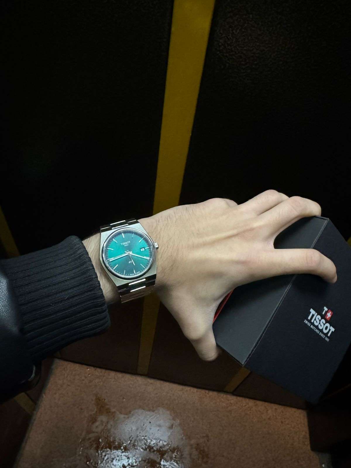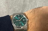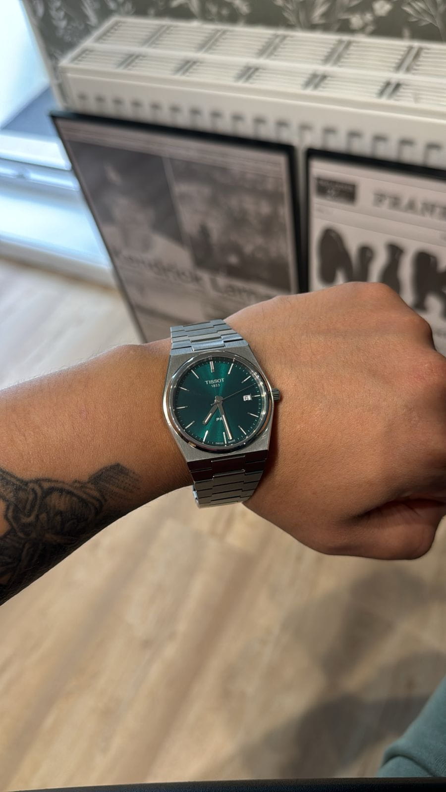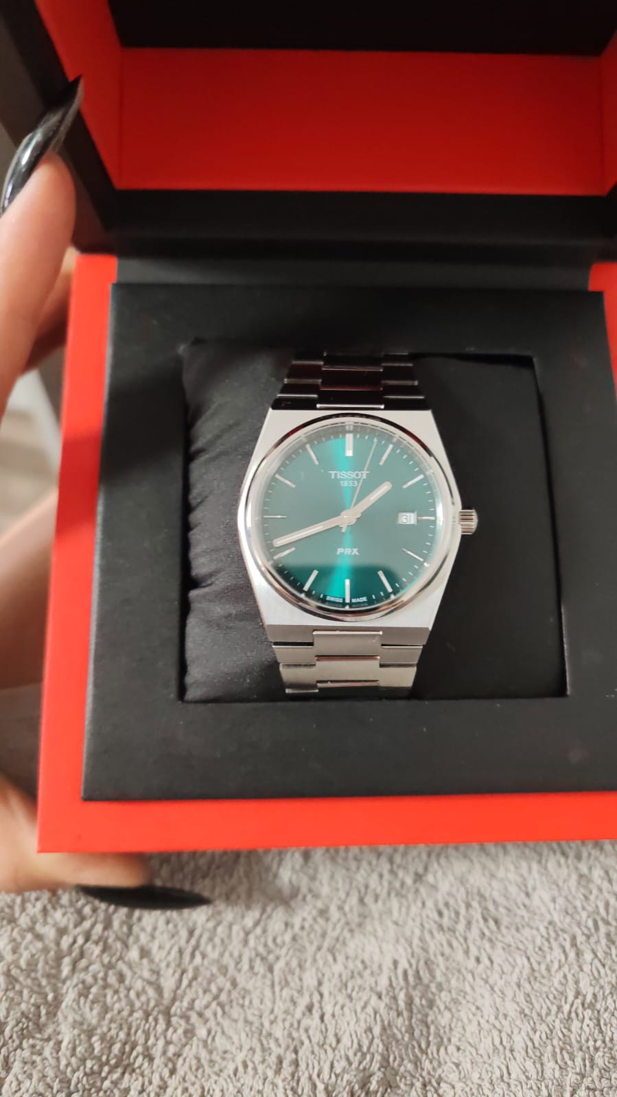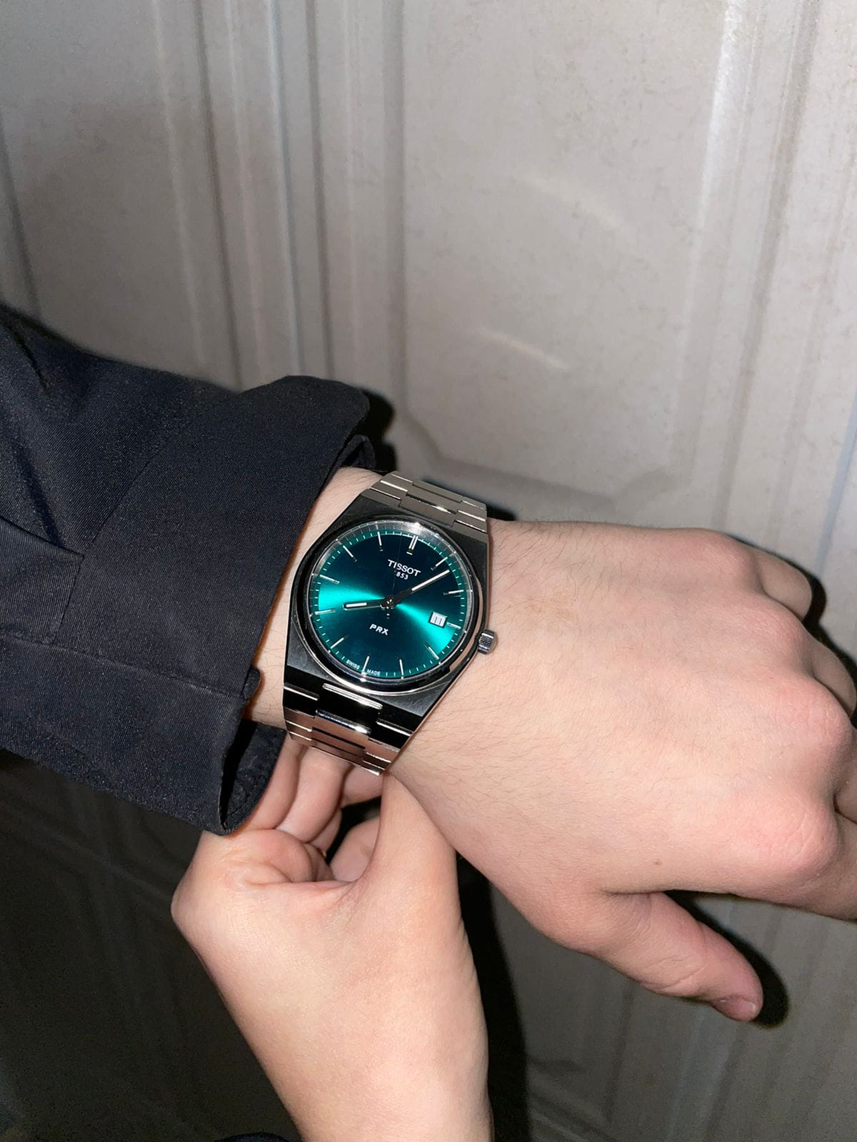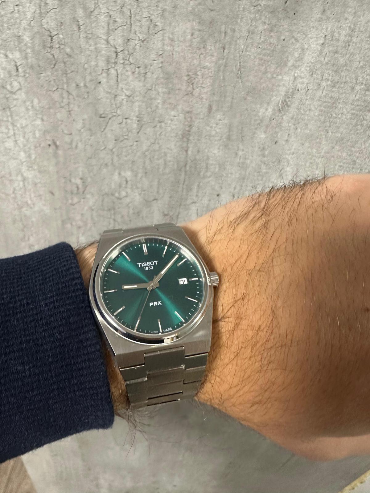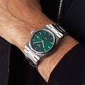 Tissot PRX 40mm (модель T137.410.11.091.00) – элегантные мужские часы, сочетающие современный стиль с передовыми технологиями. Корпус диаметром 40 мм выполнен из нержавеющей стали 316L, что обеспечивает надёжность и долговечность. Зелёный циферблат с эффектом солнечных лучей защищён сапфировым стекломСапфировое стеклоПрочный и надёжный материал из кристалла сапфира синтетического происхождения, характеризующийся особой твёрдостью и устойчивостью к царапинам и повреждениям., устойчивым к царапинам.