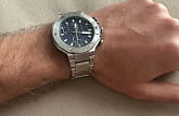 Стильное оформление корпуса выгодно подчеркнет повседневный образ. Высокая точность хода обусловлена наличием швейцарского кварцевого калибра ETA G10.212. Сапфировое стеклоСапфировое стеклоПрочный и надёжный материал из кристалла сапфира синтетического происхождения, характеризующийся особой твёрдостью и устойчивостью к царапинам и повреждениям. с антибликовым покрытием. Литой браслет из нержавеющей стали. Люминесцентная подсветкаЛюминесцентное покрытиеПозволяет считывать показания времени в темноте. Производители наносят на стрелки, часовые индексы, безель или поверхность циферблата светонакопительный состав, дающий холодное свечение. стрелок и меток. Корпус из нержавеющей стали. Водостойкость 100 метров. Секундомер, тахиметрТахиметрРазмеченная шкала, располагается на ободке или безеле часов. Тахиметр позволяет рассчитать скорость на определённом участке пути, расстояние измеряется в километрах или милях., индикация числа. Габариты: 45 x 45 x 11,8 мм.