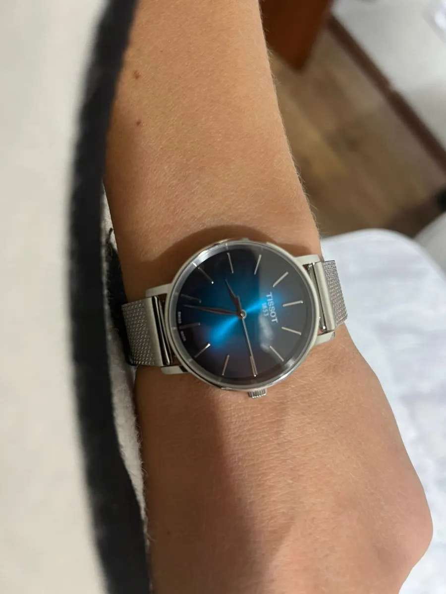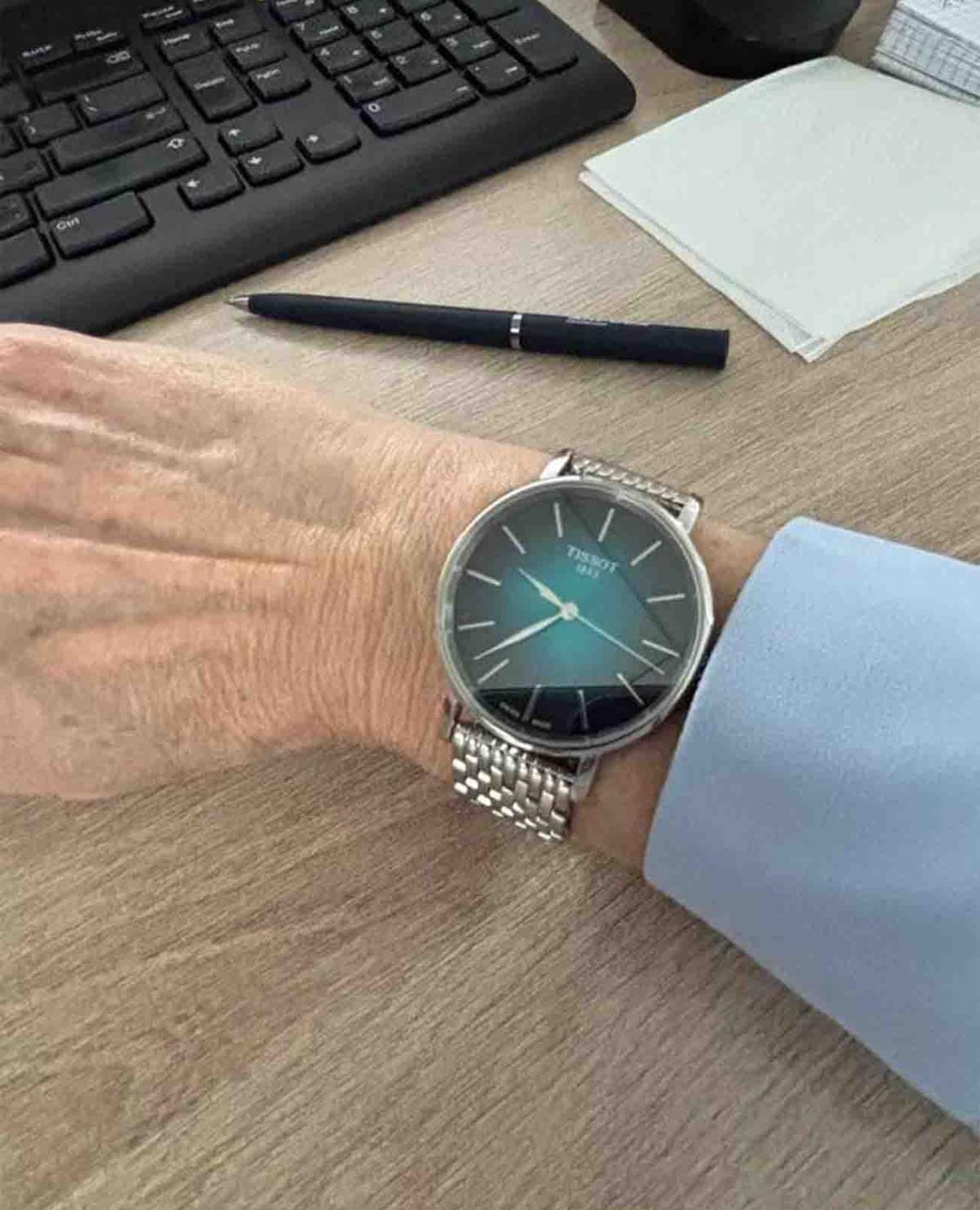 Tissot Everytime Lady T143.210.11.091.00 – элегантные женские часы, сочетающие современный дизайн и надёжность. Корпус диаметром 34 мм и толщиной 6,92 мм выполнен из нержавеющей стали 316L, обеспечивая долговечность и устойчивость к коррозии. Градиентный зелёно-чёрный циферблат придаёт модели уникальный и стильный вид, а его поверхность защищена сапфировым стекломСапфировое стеклоПрочный и надёжный материал из кристалла сапфира синтетического происхождения, характеризующийся особой твёрдостью и устойчивостью к царапинам и повреждениям., устойчивым к царапинам.