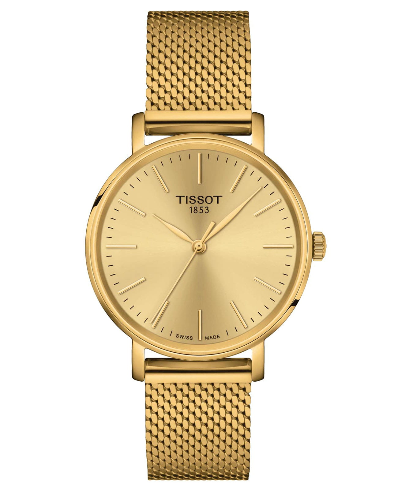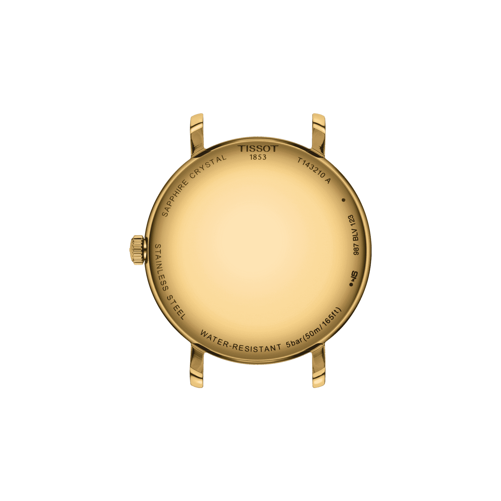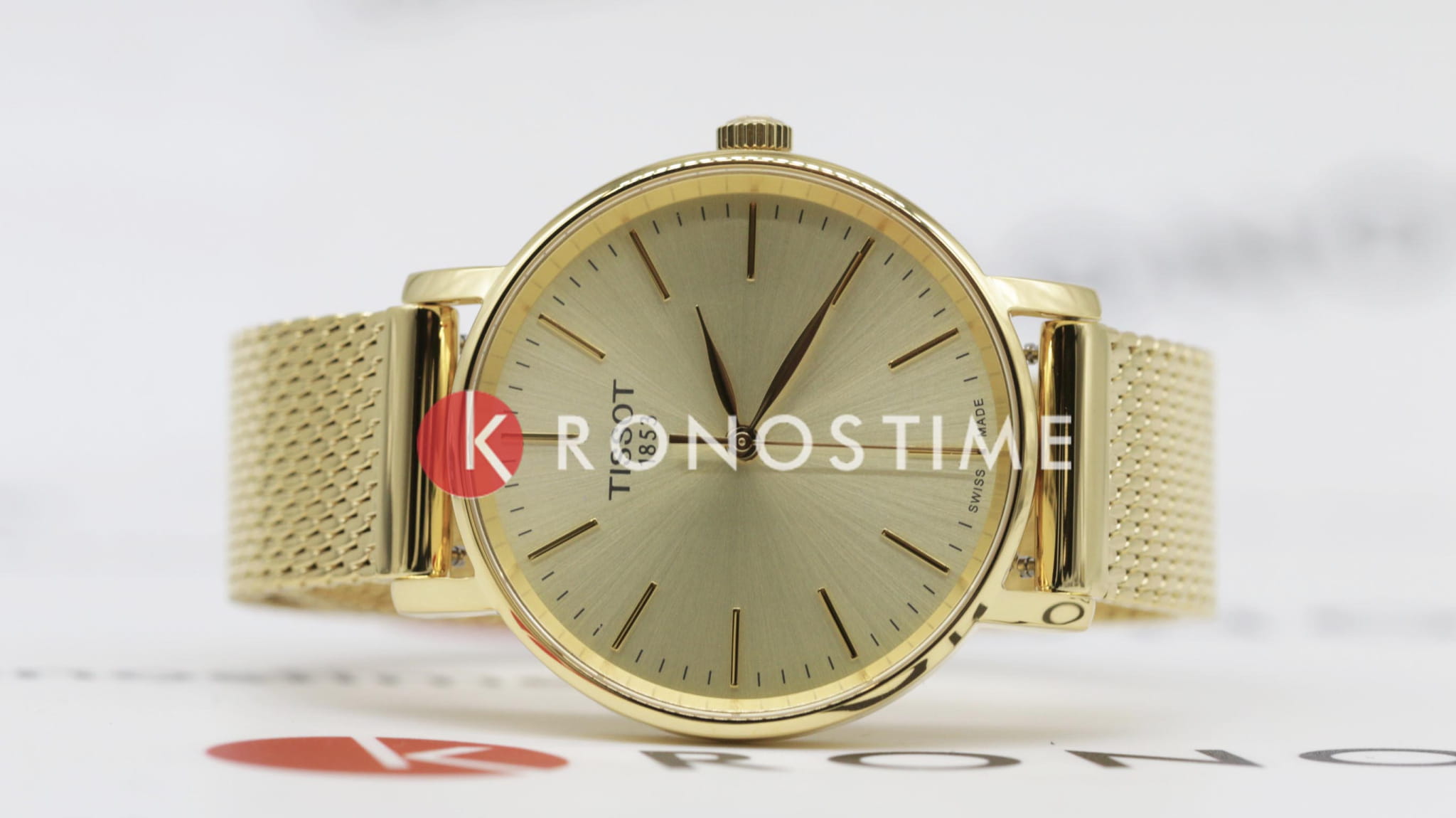 Женские швейцарские часы в классическом стиле Tissot Everytime Lady T143.210.33.021.00, кварцевый механизм с высокой точностью. Сапфировое стеклоСапфировое стеклоПрочный и надёжный материал из кристалла сапфира синтетического происхождения, характеризующийся особой твёрдостью и устойчивостью к царапинам и повреждениям. устойчивое к появлению царапин, обладающее высокой прозрачностью. Класс водозащиты: 50 метров, позволит защитить корпус от случайных брызг или капель дождя. Корпус и браслет часов изготовлены из стали с PVD-покрытиемPVDУльтратонкое покрытие наносится в технике вакуумного напыления, сочетает в себе нитрид титана особой прочности со слоем золота или оксида хрома. Несёт в себе декоративную или защитную функцию..