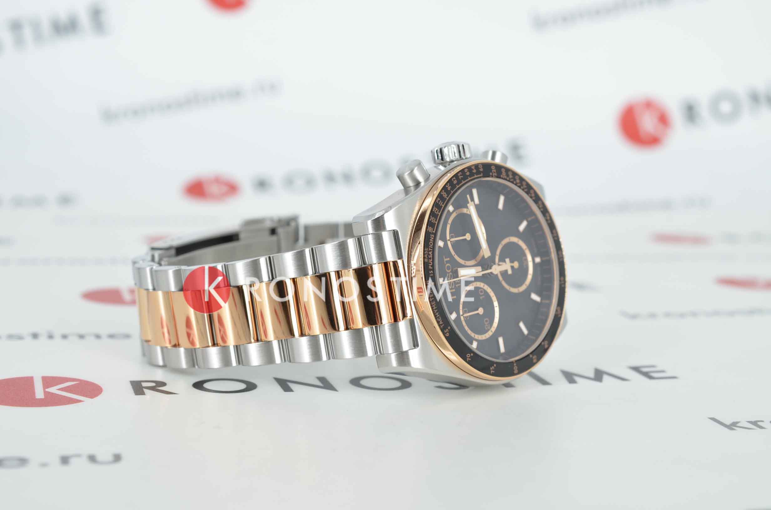 Tissot PR516 Quartz Chronograph T149.417.22.051.01 – элегантные мужские часы, вдохновлённые миром автоспорта 1960-х годов. Корпус диаметром 40 мм и толщиной 12,16 мм выполнен из нержавеющей стали 316L и безельБезельВнешний ободок, закрепляющий стекло. В спортивных часах так называется поворотное кольцо с делениями на циферблате, выполняет роль таймера – замеряет отрезки времени на шкале. Неподвижный безель – элемент декора. Однонаправленно вращающийся безель на дайверских часах позволяет фиксировать моменты погружения и выныривания на поверхность. с PVD-покрытиемPVDУльтратонкое покрытие наносится в технике вакуумного напыления, сочетает в себе нитрид титана особой прочности со слоем золота или оксида хрома. Несёт в себе декоративную или защитную функцию., придающим модели стильный и современный вид. Чёрный циферблат защищён сапфировым стекломСапфировое стеклоПрочный и надёжный материал из кристалла сапфира синтетического происхождения, характеризующийся особой твёрдостью и устойчивостью к царапинам и повреждениям. с антибликовым покрытиемАнтибликовое покрытиеСлой оксида металла в 0,13-0,3 микрон, благодаря которому стекло часов не бликует и не отражает свет. Антибликовое покрытие уменьшает отражение света в 10 раз, обеспечивая отличную читаемость показателей циферблата., обеспечивающим устойчивость к царапинам и отличную читаемость. Задняя крышка корпуса украшена гравировкой, подчёркивающей уникальность дизайна. Часы оснащены швейцарским кварцевым механизмом с функцией хронографаХронографФункция позволяет измерять отрезки времени с особой точностью: часы, минуты, секунды. Верным признаком хронографа является наличие на циферблате 3 дополнительных окошек-счётчиков., обеспечивающим высокую точность хода. Функциональность модели включает 30-минутный и 1/10-секундный счётчики, центральную 60-секундную стрелку хронографа, а также функции ADD и сплит-хронографаСплит-хронографИспользуется для измерения продолжительности нескольких временных отрезков, начинающихся одновременно, а заканчивающихся в разное время.. Индексы и стрелки покрыты люминесцентным покрытиемЛюминесцентное покрытиеПозволяет считывать показания времени в темноте. Производители наносят на стрелки, часовые индексы, безель или поверхность циферблата светонакопительный состав, дающий холодное свечение. Super-LumiNova®, обеспечивающим отличную видимость в условиях низкой освещённости. Браслет из нержавеющей стали с PVD-покрытиемPVDУльтратонкое покрытие наносится в технике вакуумного напыления, сочетает в себе нитрид титана особой прочности со слоем золота или оксида хрома. Несёт в себе декоративную или защитную функцию. розового золота оснащён системой быстрой замены и раскладной застёжкойРаскладная застёжкаТакой тип застёжки используется только на браслетах из металла. Она никогда не раскрывается полностью, происходит разделение на 2 и более частей. Раскладывающая застёжка снизит вероятность потери часов к минимуму. с предохранителем и кнопками, обеспечивающей комфортное ношение и надёжную фиксацию на запястье. Водозащита до 100 метров (10 бар) позволяет использовать часы во время плавания и других водных видов спорта.