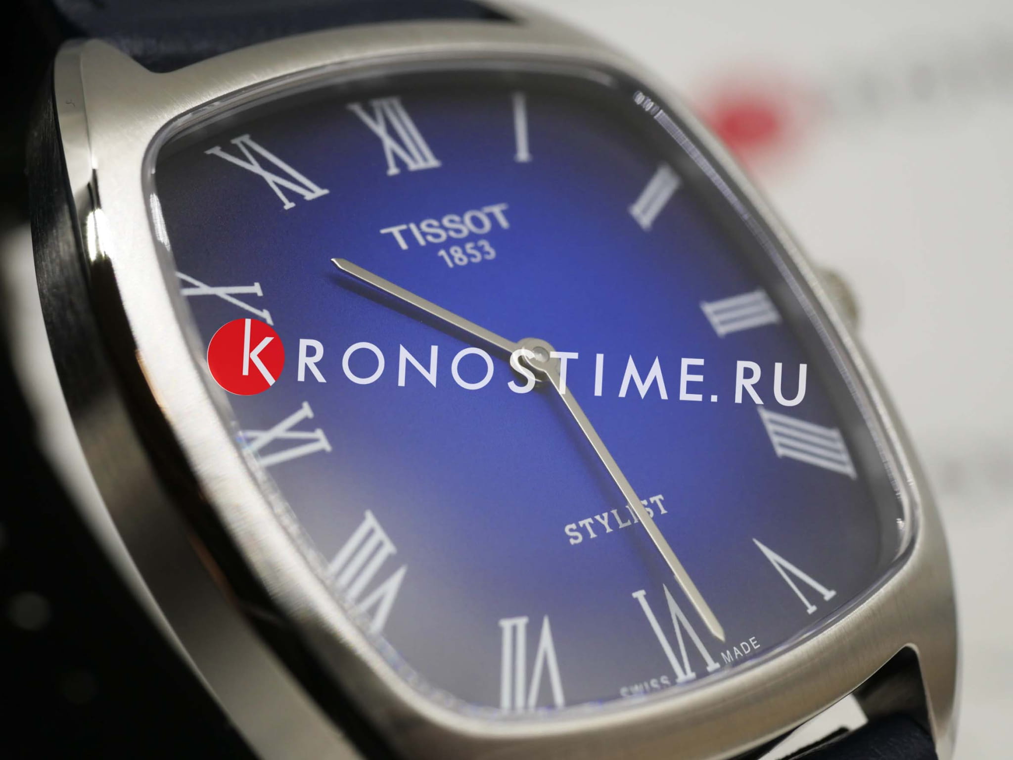 Tissot Stylist (модель T159.909.16.043.00) – элегантные женские часы, сочетающие ретро-стиль с современными технологиями. Квадратный корпус 32 × 32 мм выполнен из нержавеющей стали 316L, что обеспечивает прочность и долговечность. Градиентный синий циферблат с плавным переходом оттенков защищён сапфировым стекломСапфировое стеклоПрочный и надёжный материал из кристалла сапфира синтетического происхождения, характеризующийся особой твёрдостью и устойчивостью к царапинам и повреждениям., устойчивым к царапинам.