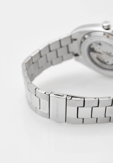 Итальянские мужские часы Trussardi Metropolitan R2423159001 - это стильный мужской аксессуар, который сочетает элегантный дизайн и практичность. Корпус выполнен из нержавеющей стали, что обеспечивает долговечность и утончённый внешний вид. Надежное минеральное стеклоМинеральное стеклоМинеральное стекло представляет собой искусственно выращенный минерал кварца. Такое стекло отличается особой устойчивостью к повреждениям и царапинам. Уступает по некоторым качествам сапфировому стеклу. с сапфировым покрытием защищает циферблат от царапин и обеспечивает долговечность. Стрелки и метки оснащены люминесцентным покрытиемЛюминесцентное покрытиеПозволяет считывать показания времени в темноте. Производители наносят на стрелки, часовые индексы, безель или поверхность циферблата светонакопительный состав, дающий холодное свечение., обеспечивающим отличную видимость даже при слабом освещении. Сквозь прозрачное окошко на циферблате можно наблюдать за работой механизма часов. Модель оснащена механическим механизмом с автоподзаводом, обеспечивающим высокую точность хода. Браслет из нержавеющей стали с раскладной застёжкойРаскладная застёжкаТакой тип застёжки используется только на браслетах из металла. Она никогда не раскрывается полностью, происходит разделение на 2 и более частей. Раскладывающая застёжка снизит вероятность потери часов к минимуму. обеспечивает комфортное ношение. Водозащита 50 метров позволит защитить корпус от случайных брызг или капель дождя. Эта модель – отличный выбор для тех, кто ищет сочетание стиля, качества и функциональности. Часы станут не только полезным аксессуаром, но и выразительным элементом вашего имиджа.