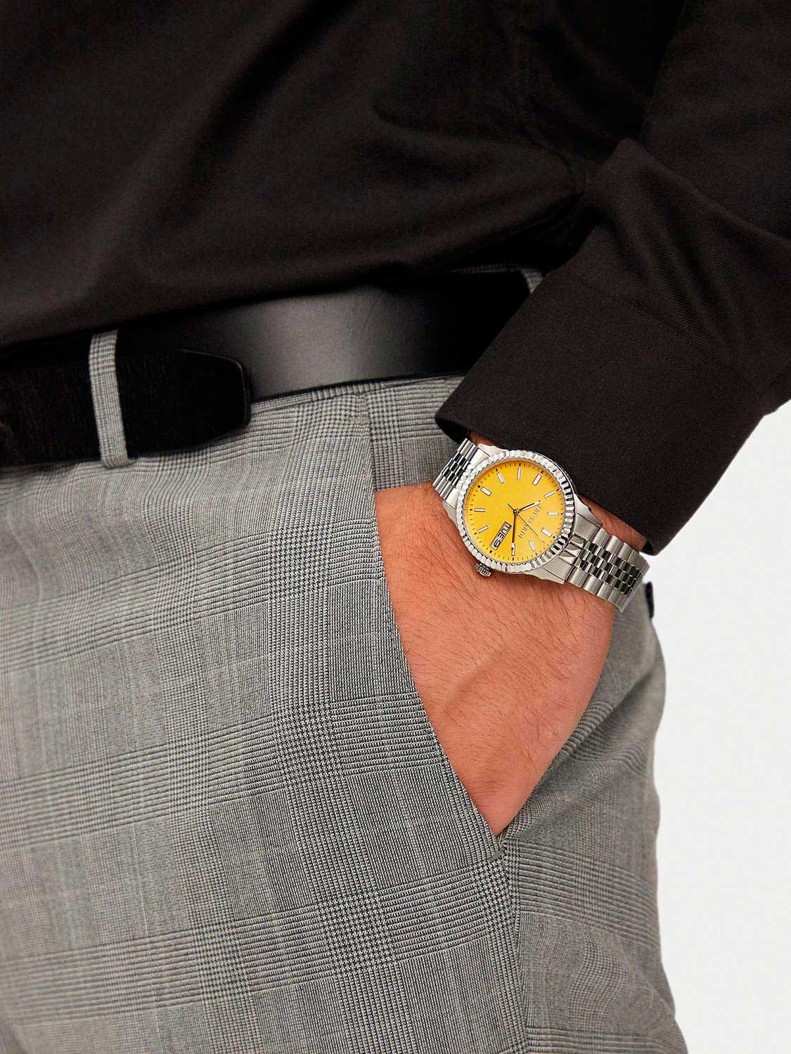 Итальянские мужские часы Trussardi T-Bent R2453141013 - это стильный мужской аксессуар, который сочетает элегантный дизайн и практичность. Корпус выполнен из нержавеющей стали, что обеспечивает долговечность и утончённый внешний вид. Надежное минеральное стеклоМинеральное стеклоМинеральное стекло представляет собой искусственно выращенный минерал кварца. Такое стекло отличается особой устойчивостью к повреждениям и царапинам. Уступает по некоторым качествам сапфировому стеклу. защищает циферблат от царапин и обеспечивает долговечность. Модель оснащена кварцевым механизмом, обеспечивающим высокую точность хода. Браслет из нержавеющей стали с раскладной застёжкойРаскладная застёжкаТакой тип застёжки используется только на браслетах из металла. Она никогда не раскрывается полностью, происходит разделение на 2 и более частей. Раскладывающая застёжка снизит вероятность потери часов к минимуму. обеспечивает комфортное ношение. Водозащита 50 метров позволит защитить корпус от случайных брызг или капель дождя. Окошки даты и дня недели находятся в положении 3 часа. Стрелки и метки оснащены люминесцентным покрытиемЛюминесцентное покрытиеПозволяет считывать показания времени в темноте. Производители наносят на стрелки, часовые индексы, безель или поверхность циферблата светонакопительный состав, дающий холодное свечение., обеспечивающим отличную видимость даже при слабом освещении. Эта модель – отличный выбор для тех, кто ищет сочетание стиля, качества и функциональности. Часы станут не только полезным аксессуаром, но и выразительным элементом вашего имиджа.