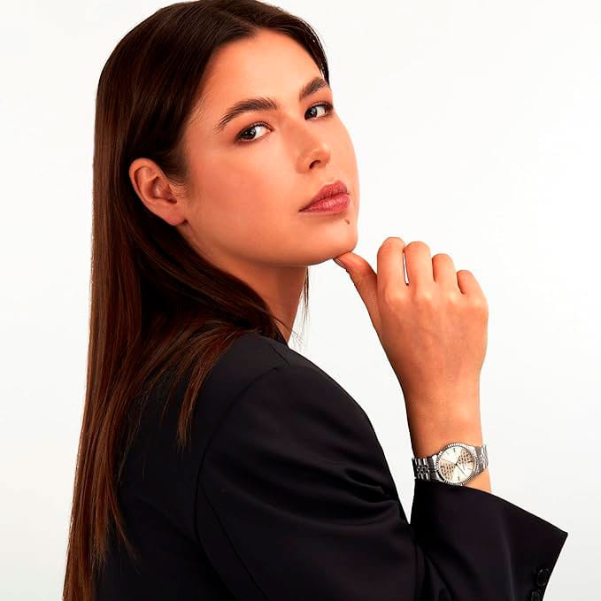 Итальянские женские часы Trussardi T-Bent R2453144512 - это стильный женский аксессуар, который сочетает элегантный дизайн и практичность. Корпус выполнен из нержавеющей стали, что обеспечивает долговечность и утончённый внешний вид. БезельБезельВнешний ободок, закрепляющий стекло. В спортивных часах так называется поворотное кольцо с делениями на циферблате, выполняет роль таймера – замеряет отрезки времени на шкале. Неподвижный безель – элемент декора. Однонаправленно вращающийся безель на дайверских часах позволяет фиксировать моменты погружения и выныривания на поверхность. с алмазной гранью. Надежное минеральное стеклоМинеральное стеклоМинеральное стекло представляет собой искусственно выращенный минерал кварца. Такое стекло отличается особой устойчивостью к повреждениям и царапинам. Уступает по некоторым качествам сапфировому стеклу. защищает циферблат от царапин и обеспечивает долговечность. Модель оснащена кварцевым механизмом, обеспечивающим высокую точность хода. Браслет из нержавеющей стали на раскладной застёжкеРаскладная застёжкаТакой тип застёжки используется только на браслетах из металла. Она никогда не раскрывается полностью, происходит разделение на 2 и более частей. Раскладывающая застёжка снизит вероятность потери часов к минимуму. обеспечивает комфортное ношение. Водозащита 50 метров позволит защитить корпус от случайных брызг или капель дождя. Эта модель – отличный выбор для тех, кто ищет сочетание стиля, качества и функциональности. Часы станут не только полезным аксессуаром, но и выразительным элементом вашего имиджа.