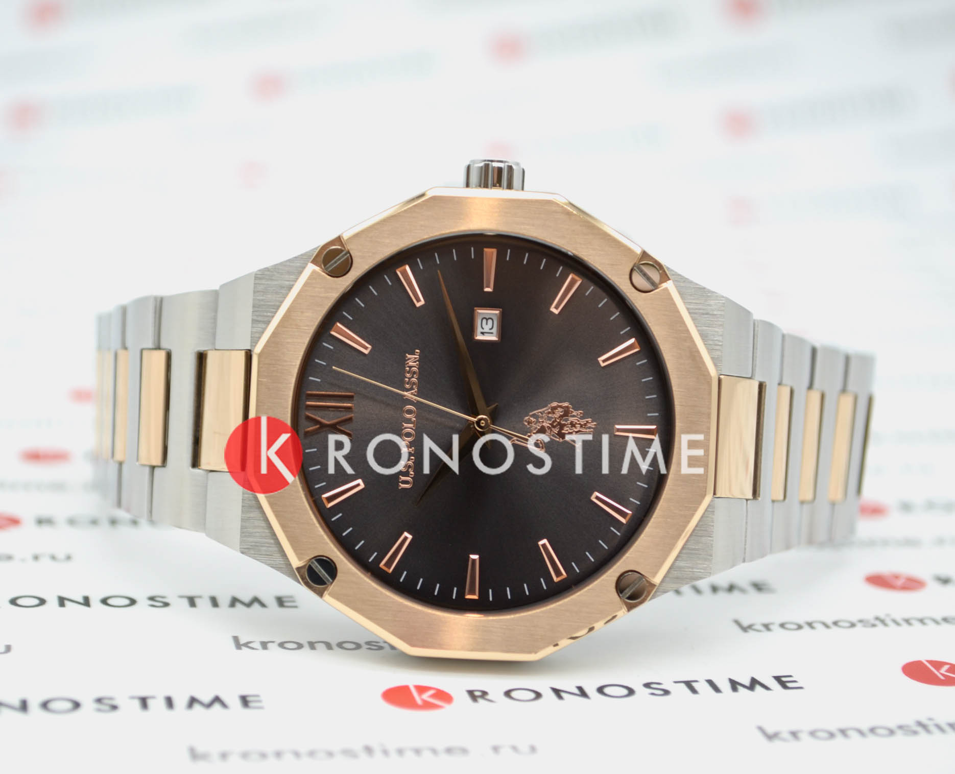 Мужские часы U.S. Polo Assn. Fundamental USPA1056-02, кварцевый механизм с высокой точностью. Минеральное стеклоМинеральное стеклоМинеральное стекло представляет собой искусственно выращенный минерал кварца. Такое стекло отличается особой устойчивостью к повреждениям и царапинам. Уступает по некоторым качествам сапфировому стеклу. устойчивое к появлению царапин, обладающее высокой прозрачностью. Корпус изготовлен из нержавеющей стали. БезельБезельВнешний ободок, закрепляющий стекло. В спортивных часах так называется поворотное кольцо с делениями на циферблате, выполняет роль таймера – замеряет отрезки времени на шкале. Неподвижный безель – элемент декора. Однонаправленно вращающийся безель на дайверских часах позволяет фиксировать моменты погружения и выныривания на поверхность. из нержавеющей стали с IP-покрытиемIP-покрытиеМетод ионного напыления. Демонстрирует повышенную устойчивость к истиранию, окислению и химическим веществам. Под воздействием высокого давления и температуры около 1500°C молекулы металла надёжно соединяются с частицами корпуса часов.. Окошко даты в положении 3 часов. Класс водозащиты: 50 метров, позволит защитить корпус от случайных брызг или капель дождя. Стальной браслет с частичным IP-покрытиемIP-покрытиеМетод ионного напыления. Демонстрирует повышенную устойчивость к истиранию, окислению и химическим веществам. Под воздействием высокого давления и температуры около 1500°C молекулы металла надёжно соединяются с частицами корпуса часов. на застёжке «бабочка» с кнопкамиЗастёжка "бабочка"Такой вид застёжки дополняется предохранителями, помогающими избежать случайного раскрытия браслета. Обладают изящным исполнением. .