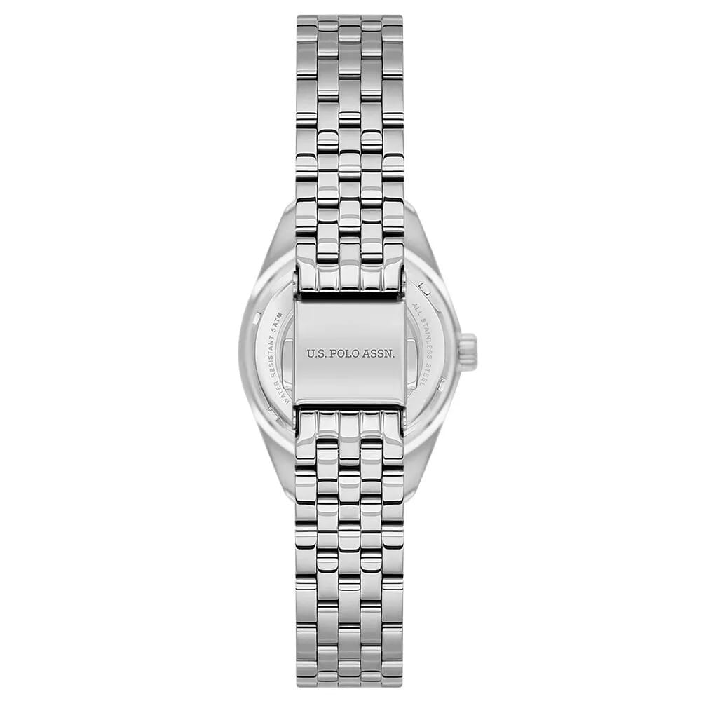 Женские наручные часы U.S. Polo Assn. Stile USPA2109-01 — это стильный и лаконичный аксессуар, выполненный в форме квадрата. Модель изготовлена из стали серебристого цвета, придающий часам роскошный вид. Циферблат с лаконичными центральными часовой, минутной и секундой стрелками. Защиту циферблата обеспечивает минеральное стеклоМинеральное стеклоМинеральное стекло представляет собой искусственно выращенный минерал кварца. Такое стекло отличается особой устойчивостью к повреждениям и царапинам. Уступает по некоторым качествам сапфировому стеклу., устойчивое к мелким повреждениям. Часы оснащены кварцевым механизмом, гарантирующим точность и минимальное обслуживание. Водонепроницаемость 3 АТМ позволяет использовать часы в повседневных условиях — при мытье рук или под лёгким дождём. Браслет выполнен из стали и оснащён раскладной застёжкойРаскладная застёжкаТакой тип застёжки используется только на браслетах из металла. Она никогда не раскрывается полностью, происходит разделение на 2 и более частей. Раскладывающая застёжка снизит вероятность потери часов к минимуму., обеспечивающей комфорт и уверенную фиксацию на запястье. Толщина корпуса составляет 8 мм, а его размер 28 мм, что делает часы компактными и удобными в носке. Эти часы станут универсальным аксессуаром для уверенных в себе женщин, которые ценят сочетание стиля, качества и эстетики — идеальный выбор для повседневного образа и торжественных случаев.