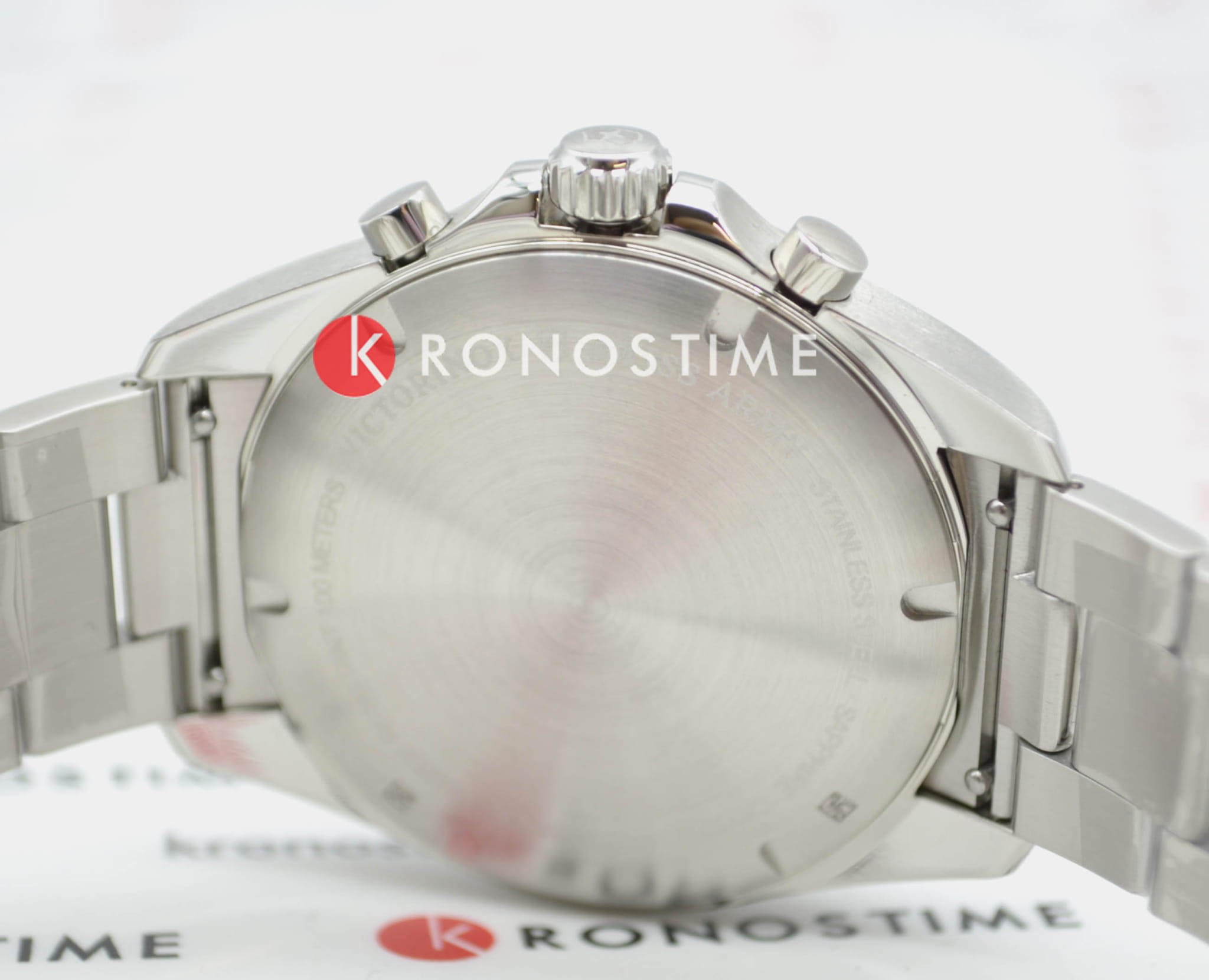 Мужские швейцарские часы-хронографХронографФункция позволяет измерять отрезки времени с особой точностью: часы, минуты, секунды. Верным признаком хронографа является наличие на циферблате 3 дополнительных окошек-счётчиков. Victorinox Fieldforce Chronograph 241899 с надёжным кварцевым механизмом. Сапфировое стеклоСапфировое стеклоПрочный и надёжный материал из кристалла сапфира синтетического происхождения, характеризующийся особой твёрдостью и устойчивостью к царапинам и повреждениям. с трёхслойным антибликовым покрытием. Корпус часов выполнен из нержавеющей стали 316L. Стальной браслет на раскладной застёжкеРаскладная застёжкаТакой тип застёжки используется только на браслетах из металла. Она никогда не раскрывается полностью, происходит разделение на 2 и более частей. Раскладывающая застёжка снизит вероятность потери часов к минимуму.. Влагозащита: 100 метров, позволит плавать, нырять и заниматься другими водными видами спорта. Окошко даты находится в положении 6 часов, стрелки и метки с люминесцентным покрытиемЛюминесцентное покрытиеПозволяет считывать показания времени в темноте. Производители наносят на стрелки, часовые индексы, безель или поверхность циферблата светонакопительный состав, дающий холодное свечение., тахиметрТахиметрРазмеченная шкала, располагается на ободке или безеле часов. Тахиметр позволяет рассчитать скорость на определённом участке пути, расстояние измеряется в километрах или милях..