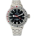 Эти практичные часы великолепно сидят на руке и позволят вам чувствовать себя уверенно в любой обстановке. Амфибия Классика. В механизме 31 камень, частота 19800 полуколебаний в час. Запас хода 31 час. Противоударное устройство оси баланса. Браслет с раскладывающейся застежкой.