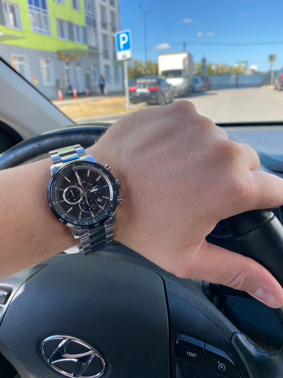 Мужские кварцевые часы Wainer из коллекции Bach — это швейцарское качество и современный дизайн. Часы оснащены механизмом RONDA 5030.D, обеспечивающим высокую точность хода. Корпус выполнен из нержавеющей стали марки 316L с PVD-покрытиемPVDУльтратонкое покрытие наносится в технике вакуумного напыления, сочетает в себе нитрид титана особой прочности со слоем золота или оксида хрома. Несёт в себе декоративную или защитную функцию. и защищён сапфировым стекломСапфировое стеклоПрочный и надёжный материал из кристалла сапфира синтетического происхождения, характеризующийся особой твёрдостью и устойчивостью к царапинам и повреждениям.. Циферблат дополнен окошком даты, указателем второго часового пояса и вынесенной секундной стрелкой. Шкала тахиметраТахиметрРазмеченная шкала, располагается на ободке или безеле часов. Тахиметр позволяет рассчитать скорость на определённом участке пути, расстояние измеряется в километрах или милях. расположена на безеле. Часы оснащены функцией хронографаХронографФункция позволяет измерять отрезки времени с особой точностью: часы, минуты, секунды. Верным признаком хронографа является наличие на циферблате 3 дополнительных окошек-счётчиков., позволяющей измерять промежутки времени. Стрелки оснащены люминесцентным покрытиемЛюминесцентное покрытиеПозволяет считывать показания времени в темноте. Производители наносят на стрелки, часовые индексы, безель или поверхность циферблата светонакопительный состав, дающий холодное свечение., что обеспечивает хорошую читаемость в темноте. Браслет из нержавеющей стали марки 316L фиксируется на раскладной застёжкеРаскладная застёжкаТакой тип застёжки используется только на браслетах из металла. Она никогда не раскрывается полностью, происходит разделение на 2 и более частей. Раскладывающая застёжка снизит вероятность потери часов к минимуму.. Водонепроницаемость 50 м.