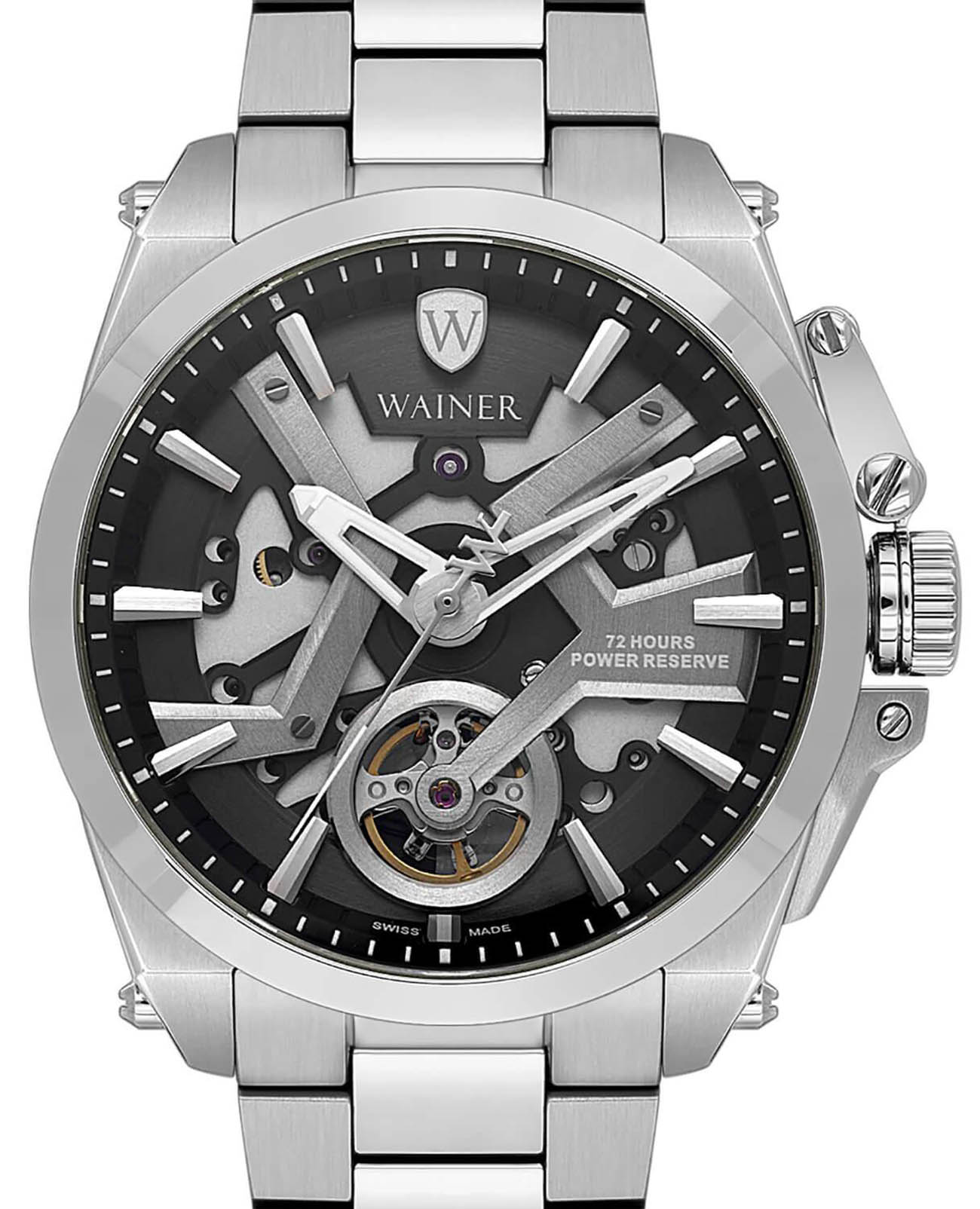 Мужские механические часы Wainer WA.25250-C — это стильный аксессуар, сочетающий в себе швейцарское качество и функциональность. Корпус выполнен из нержавеющей стали 316L диаметром 43 мм и толщиной 14 мм, что делает его прочным и устойчивым к царапинам. Циферблат скелетонизированный, а его поверхность защищена сапфировым стекломСапфировое стеклоПрочный и надёжный материал из кристалла сапфира синтетического происхождения, характеризующийся особой твёрдостью и устойчивостью к царапинам и повреждениям., устойчивым к повреждениям. Прозрачная задняя крышка позволяет наблюдать за работой механизма, подчёркивая внимание к деталям. Браслет из стали 316L шириной 22-20 мм оснащён застёжкой «бабочка» с кнопкамиЗастёжка "бабочка"Такой вид застёжки дополняется предохранителями, помогающими избежать случайного раскрытия браслета. Обладают изящным исполнением. , обеспечивающей комфорт и надёжную фиксацию на запястье. Часы водонепроницаемы до 100 метров (, что позволяет использовать их при плавании и других водных активностях без глубокого погружения. Вес изделия составляет 179 г. Эти часы станут универсальным аксессуаром для тех, кто ценит сочетание стиля, функциональности и швейцарского мастерства — идеальный выбор для повседневной носки и активного образа жизни.